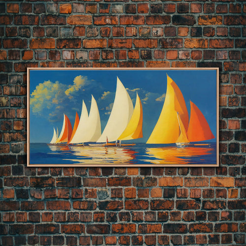 Art Deco Sailboats, Sailing Art, Sailing on the open sea, Wall Decor, Ready To Hang Framed Canvas Print, Oversize Wall Art