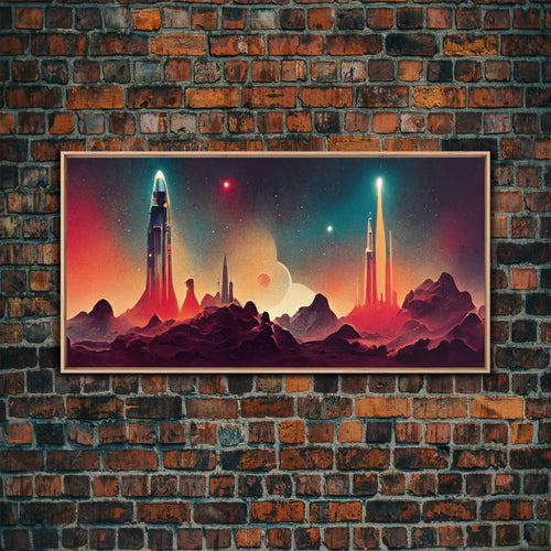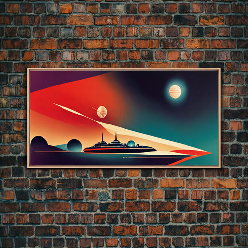 Art Deco Scifi print wall decor, ready to hang canvas print wall art Retro Vintage Style Landscape Art