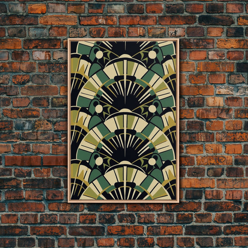 Art Deco Pattern Wall art, Framed Canvas Print, Art Deco, Wall art, Patterns art, Green colors art, Living room art, Colorful painting