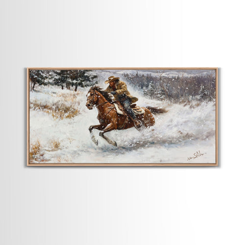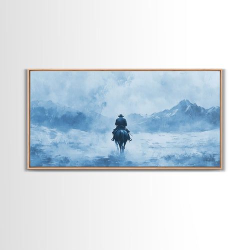 Autumn Cowboy In Forest Framed Canvas Print Western Cowboy Wall Art Fall Cowboy Gift Rustic Wall Decor Moody Landscape Above Sofa