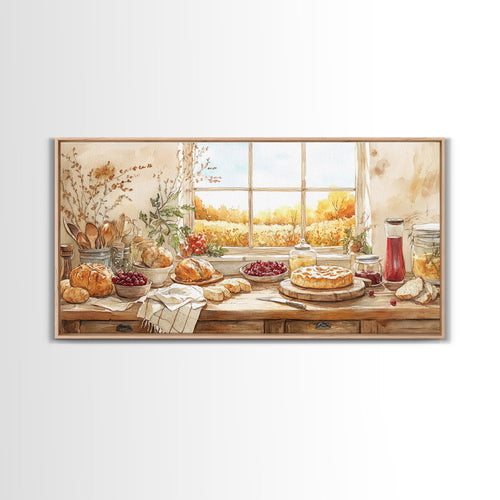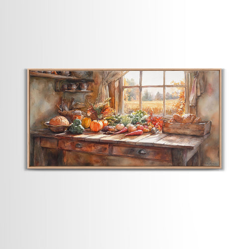 Autumn kitchen decor, cozy fall harvest print, farmhouse wall art vintage rustic fall wall print, country harvest decor, framed canvas print