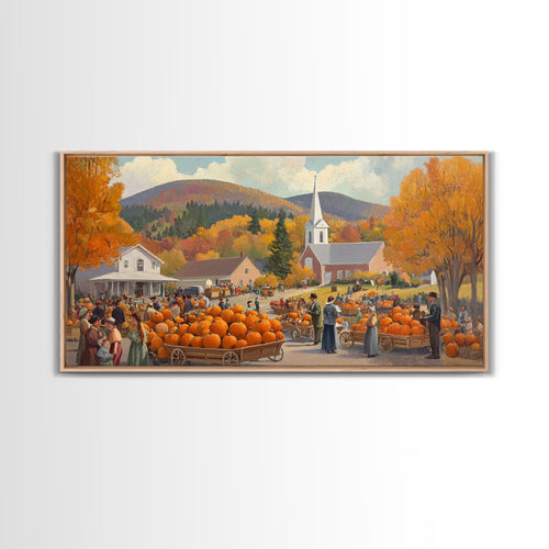 Autumn Harvest Village Scene Framed Canvas Print - Cozy Fall Decor and Seasonal Wall Art with Country Charm and Autumn Ambiance