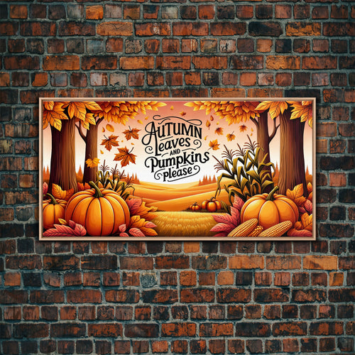 Autumn Leaves and Pumpkins Please! Modern Farmhouse Wall Decor, Dining Room Wall Sign Kitchen Decor Large Framed Canvas Print, Fall Wall Art