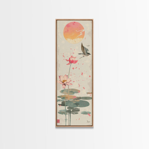 Autumn Maple Leaves Falling Tall Skinny Japanese Wall Art - Framed Canvas Print in Ukiyo-e Style