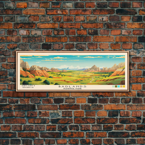 Badlands National Park, Framed Wall Art Canvas Print, Travel Poster, South Dakota Travel Art, Roadtrip Decor, Cool Art, Retro State Park Art
