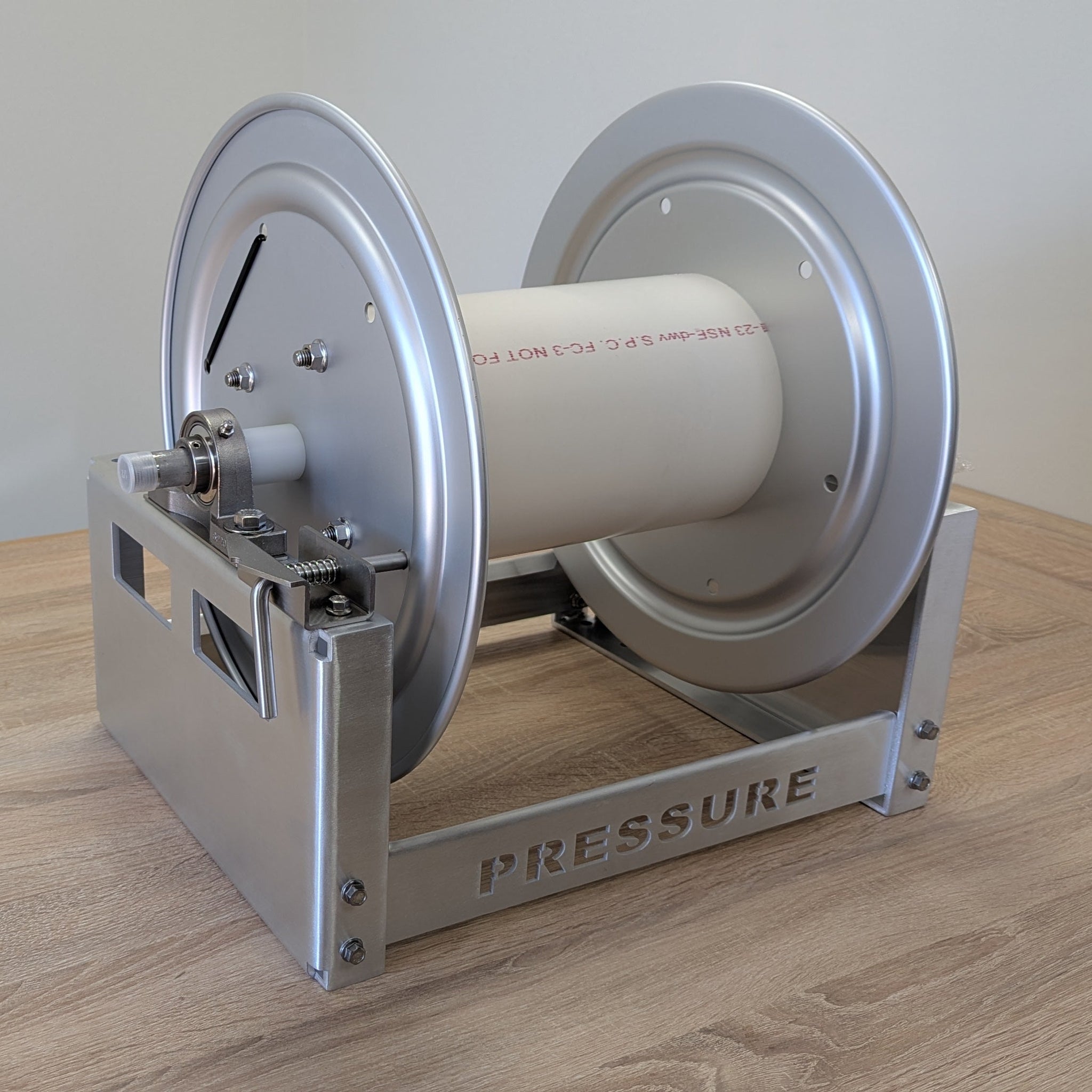 A rock solid, 12" hose reel, perfect for all things washing. Its large capacity means it'll hold more hose, and more is always better. The 316 Stainless fully welded internal manifold boasts a 1/2" internal diameter for high flow rates. Full frame design, with welded corners means rock solid reliability. The stainless pillow block, greasable bearings are overkill, but hey why not do it right? Stainless locking pin, and rubber brake complete the ensemble. These Reels come with our super tough swivel!
