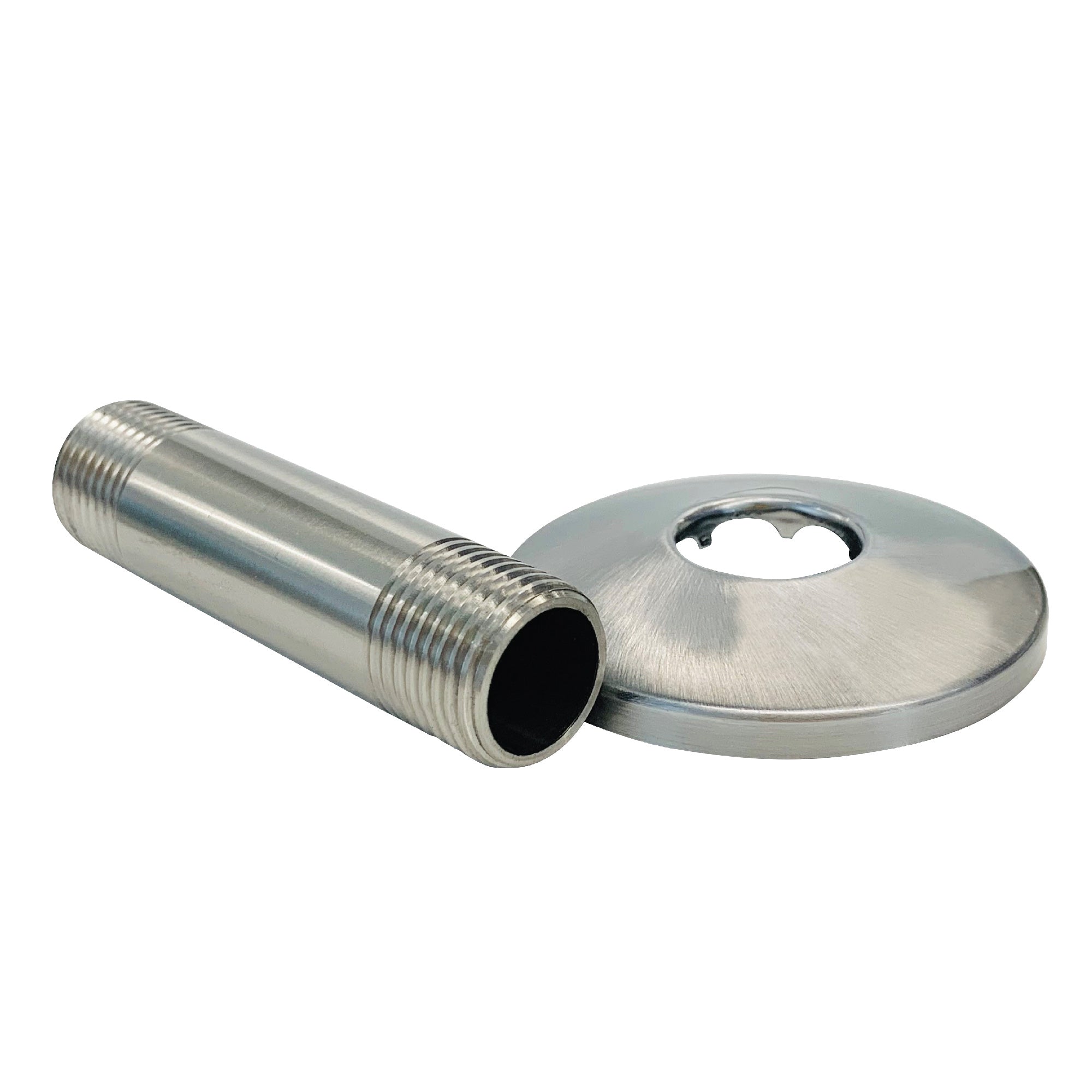 The arm’s sleek color and subtle design looks great with any decor scheme. The shower arm has ½ inch IPS male straight threading on both ends. The included flange will cover up the cut area around the pipe, providing a seamless look.