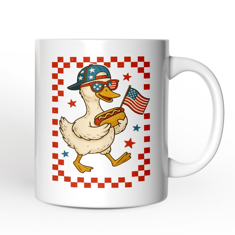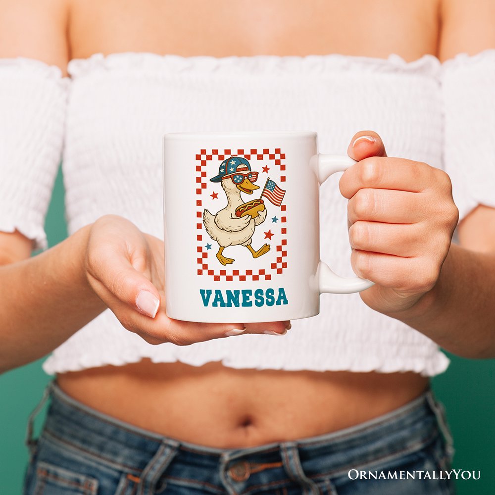 Celebrate Independence Day with a hilarious splash of personality! This patriotic duck mug is the perfect funny gift to enjoy your morning coffee or evening tea while showing off your American pride. Featuring a quirky duck dressed in red, white, and blue, this customizable ceramic mug makes a charming and unique keepsake for July 4th celebrations, BBQ parties, and fireworks fun. Add your name for a personal touch that’s sure to crack smiles and spark conversation. Whether you're sipping poolside or toasting freedom at a picnic, this festive mug is a must-have for duck lovers and patriots alike! 🇺🇸🦆🎆