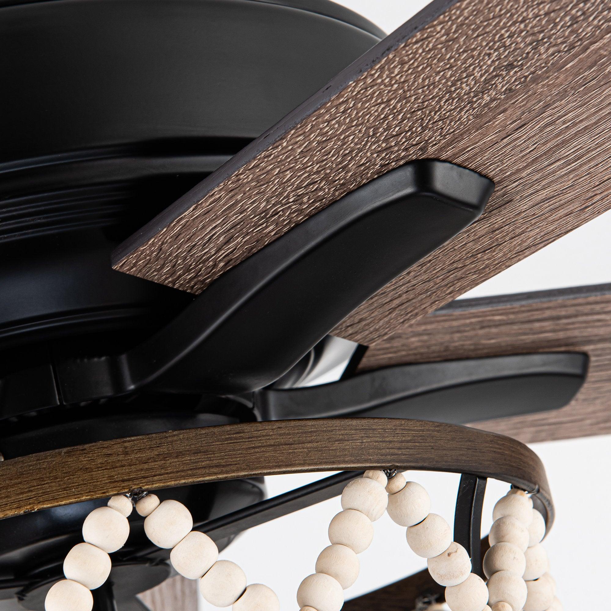 Bring appeal to vintage-inspired home decor with this 52-inch industrial-meets-bohemian ceiling fan. The metal frame, complemented by the white wooden bead-attached shade, uses three 25-watt E12 bulbs inside (bulbs not included) to cast a warm, welcoming glow in your space. Reversible fan blades provide options for different seasons. A remote control is included for you to control the wind speed in 3 levels.