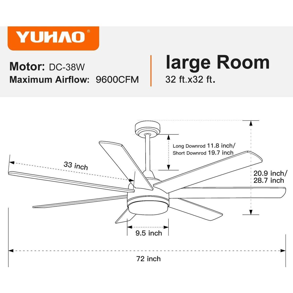 72" Large Ceiling Fan with Longer Plywood Blades which side are special design, one side is black and the other side is brown.