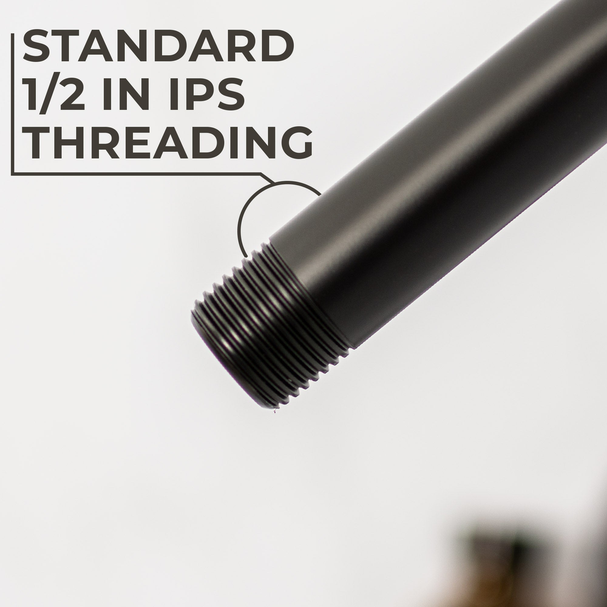 The arm’s sleek color and subtle design looks great with any decor scheme. The shower arm has ½ inch IPS male straight threading. The included flange will cover up the cut area around the pipe, providing a seamless look.