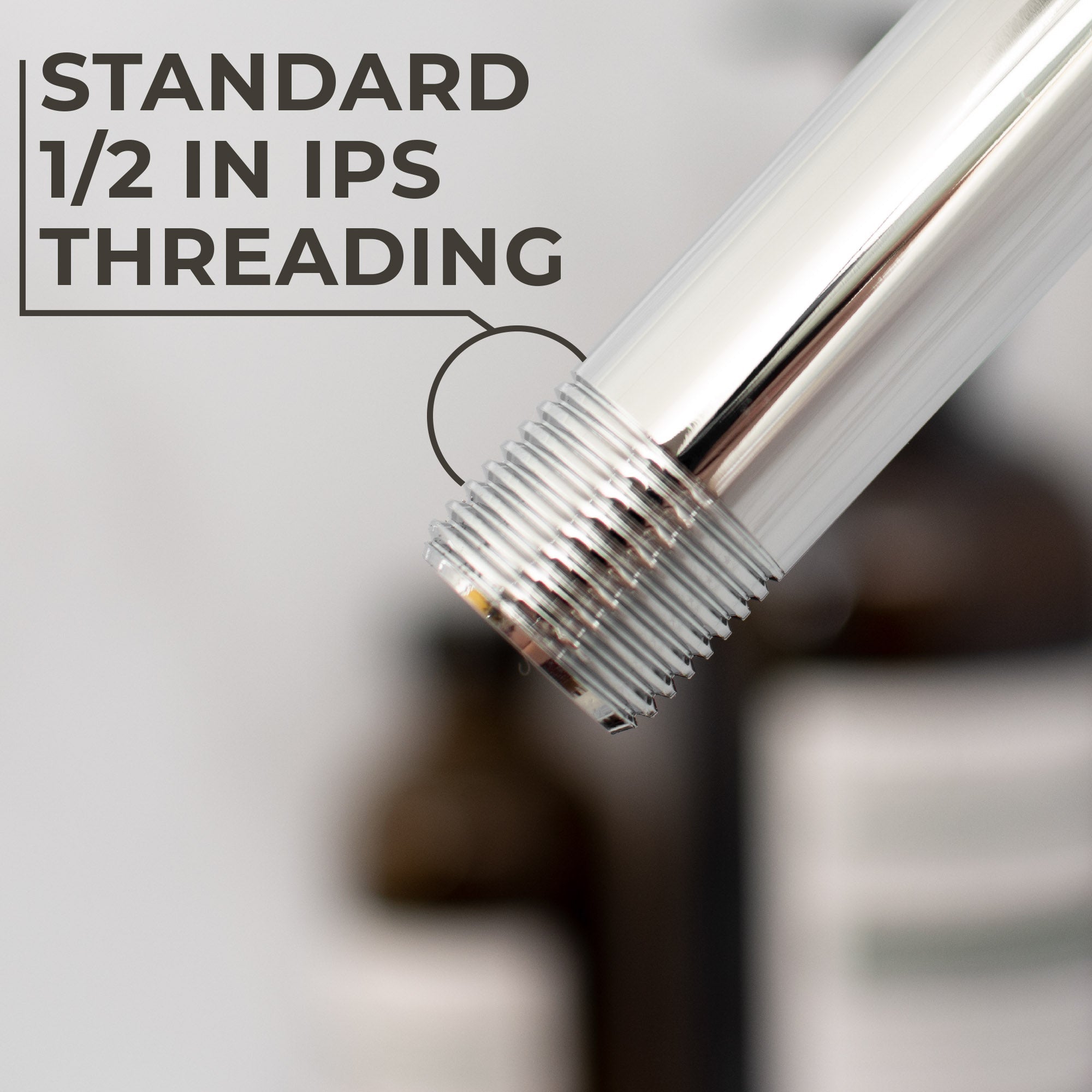 The arm’s sleek color and subtle design looks great with any decor scheme. The shower arm has ½ inch IPS male straight threading. The included flange will cover up the cut area around the pipe, providing a seamless look.