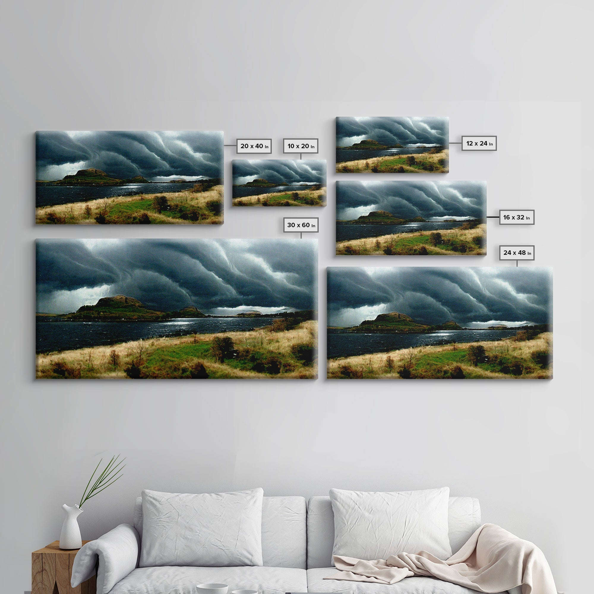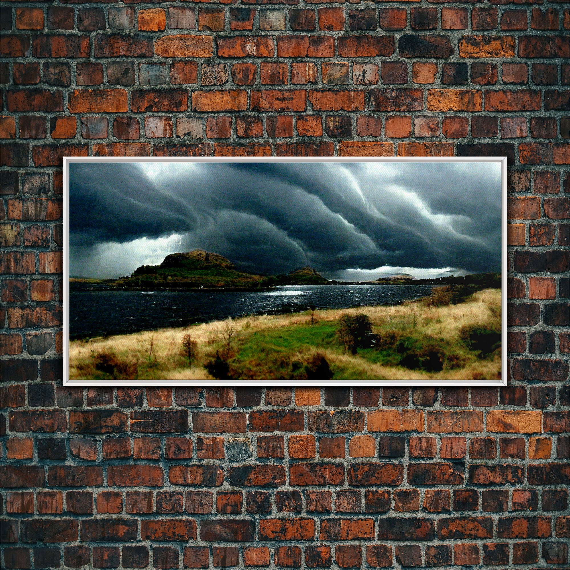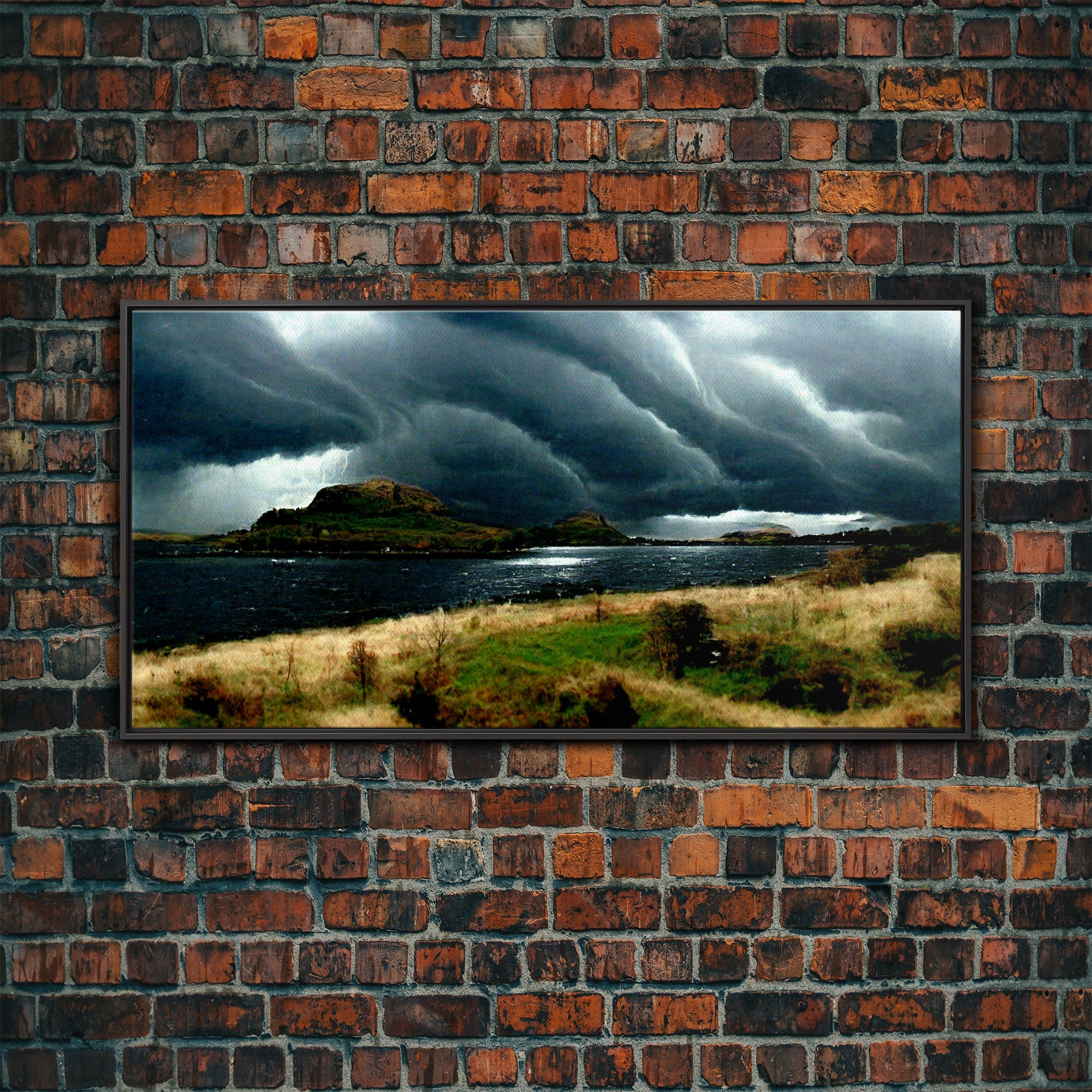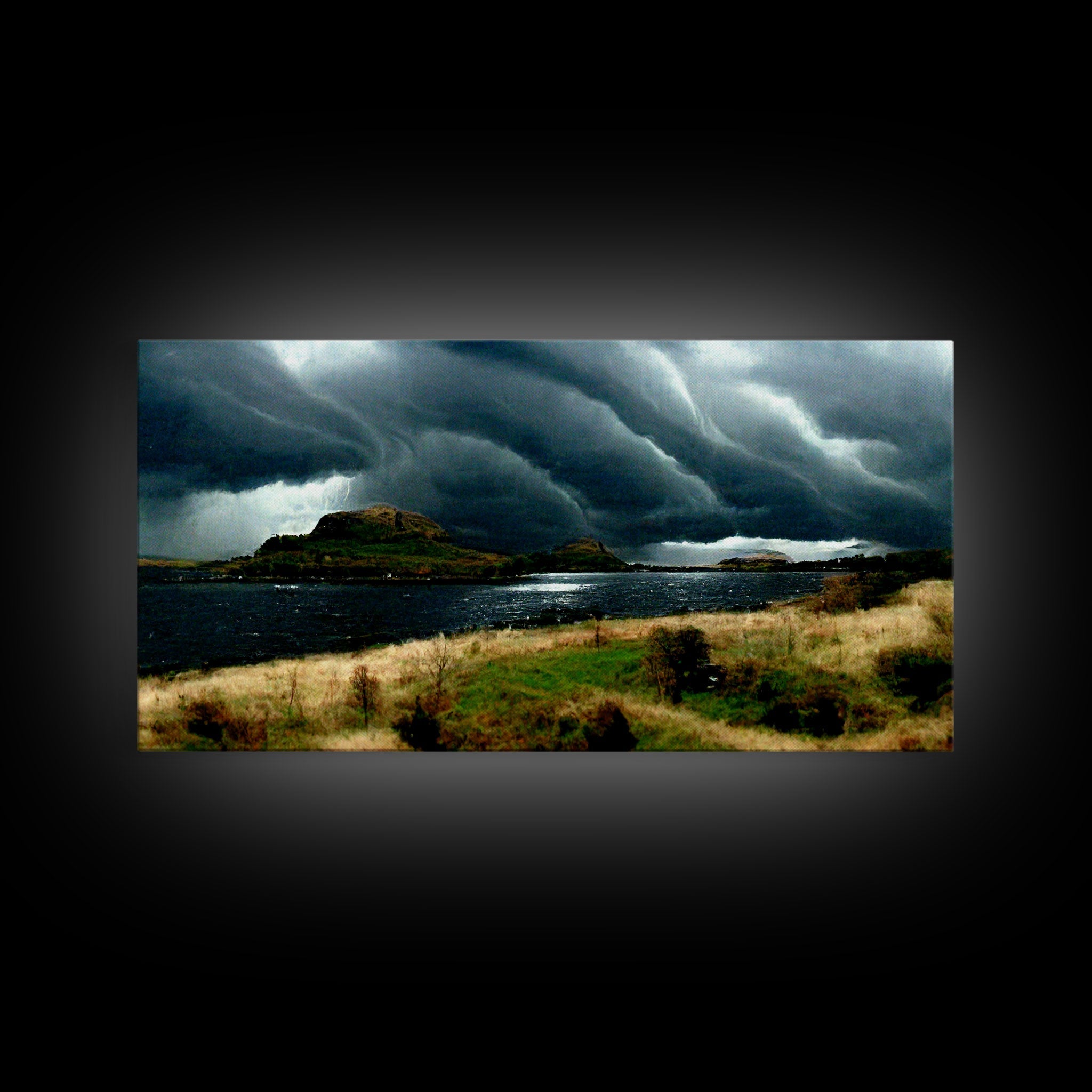 A Thunderstorm at night over the lake, canvas print, rain storm over a lake, cool wall art, unique wall art, ready to hang canvas