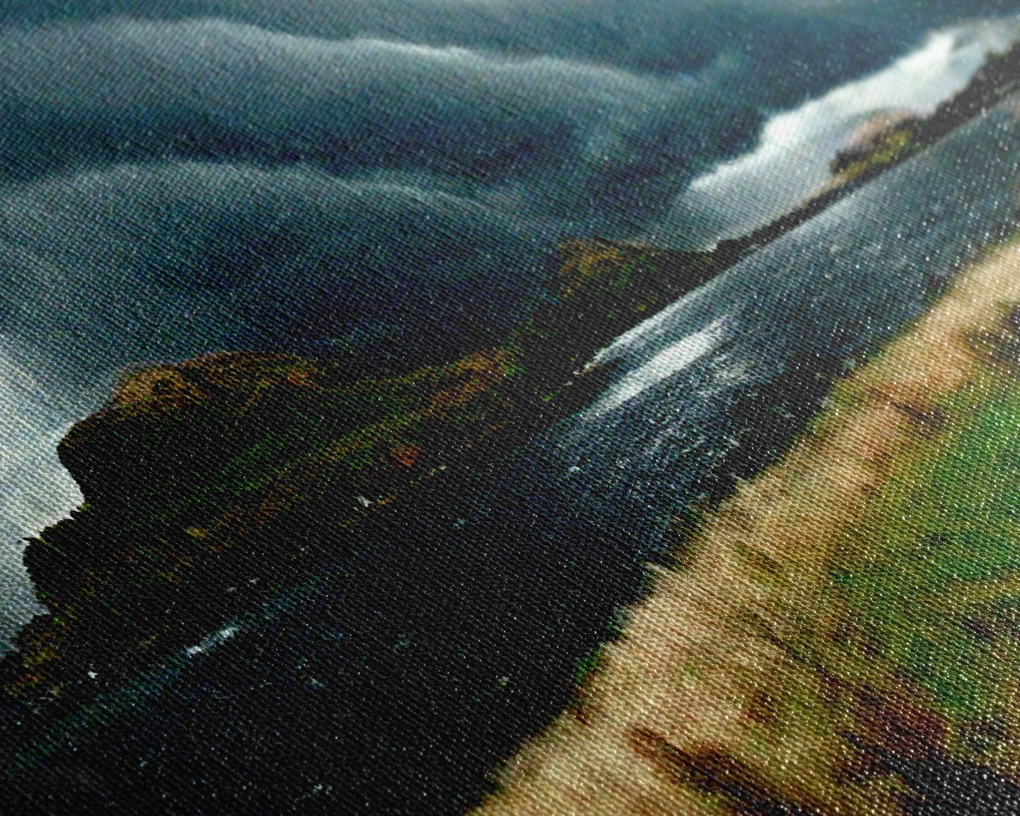 Most of our canvases are made in the USA, with the exception of canvases ordered with the light oak unstained frames, and any large canvases (24x48, 30x60, 16x48 and 20x60) ordered WITH a frame. These are temporarily made in and shipped from Europe, while we try to find a more consistent supplier in the USA.