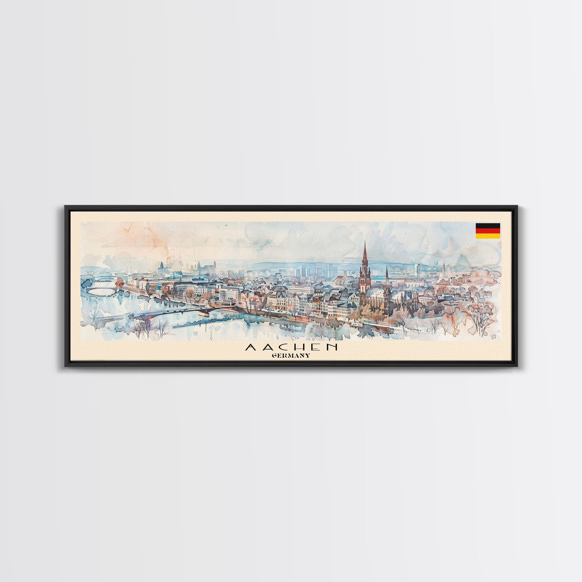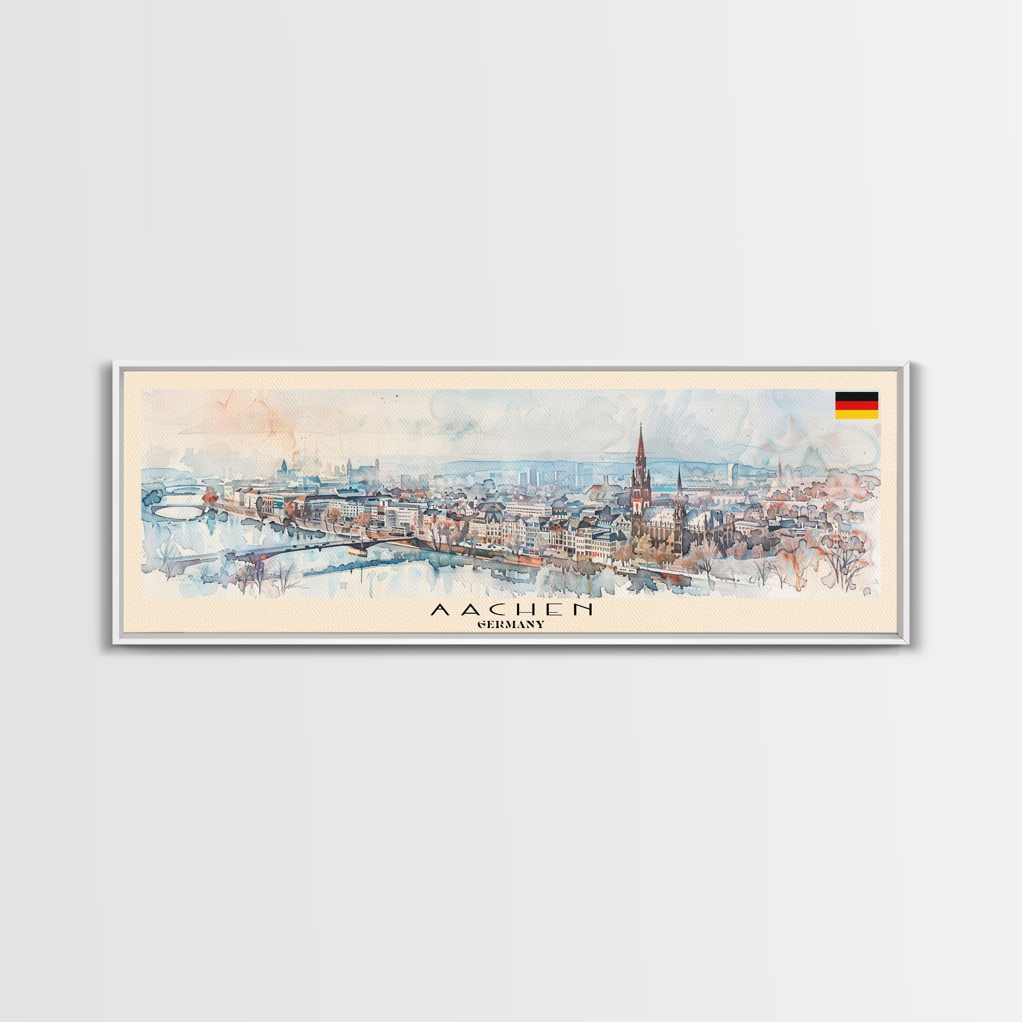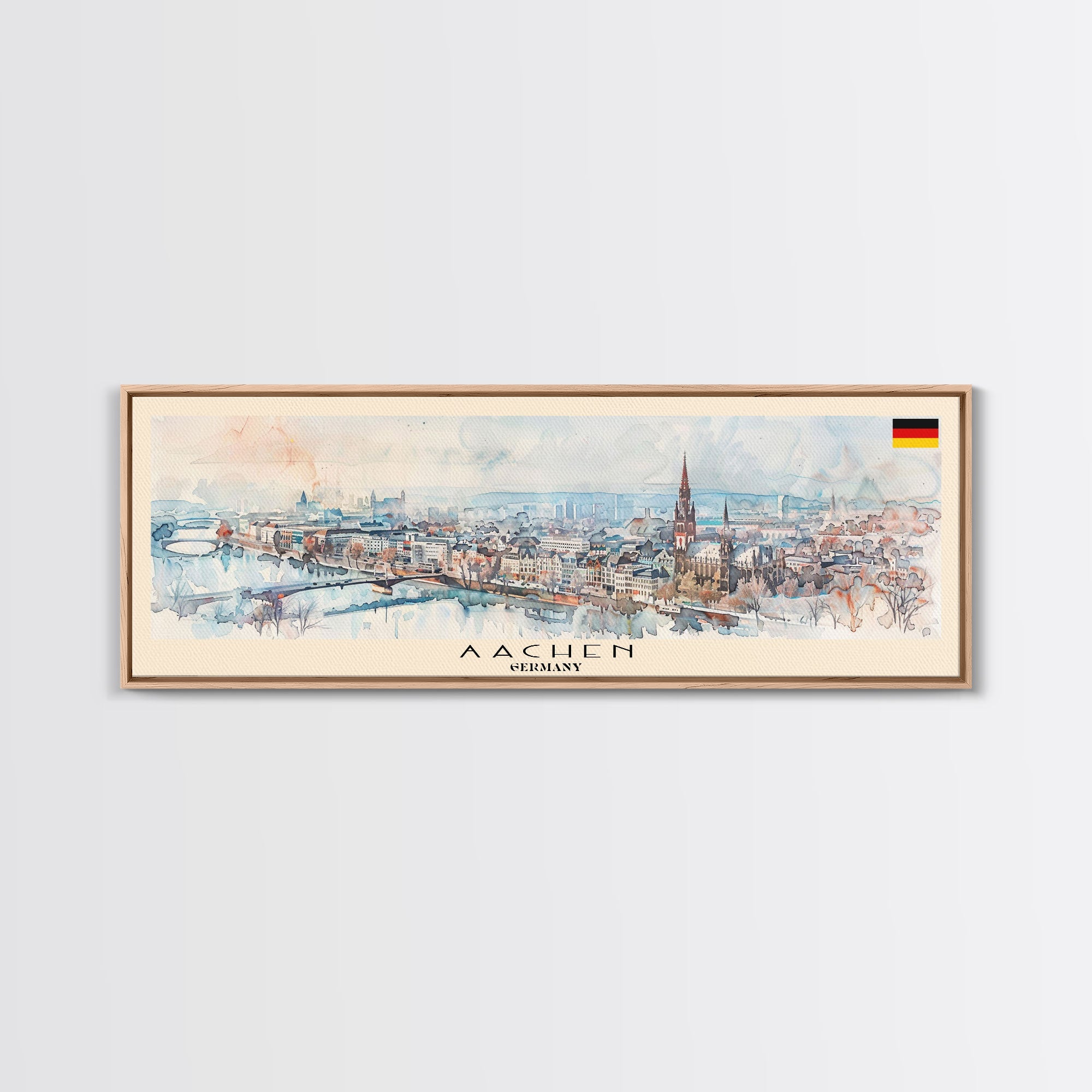 Aachen Germany  Panoramic Travel Poster, Framed Canvas Print or Metal Wall Art, Travel Art, Home Decor, Panoramic Painting, Midcentury Art