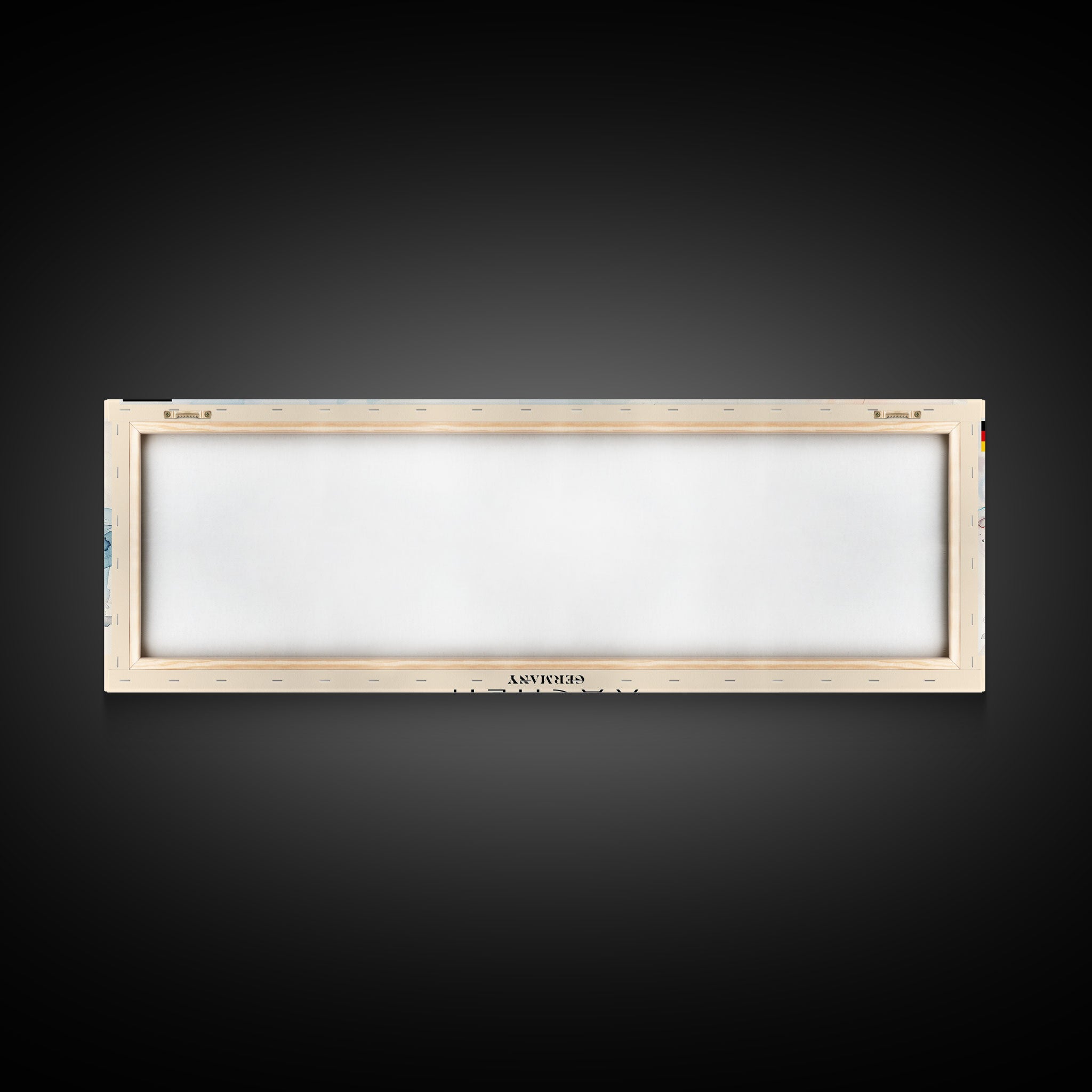 Most of our canvases are made in the USA, with the exception of canvases ordered with the light oak unstained frames, and any large canvases (24x48, 30x60, 16x48 and 20x60) ordered WITH a frame. These are temporarily made in and shipped from Europe, while we try to find a more consistent supplier in the USA.