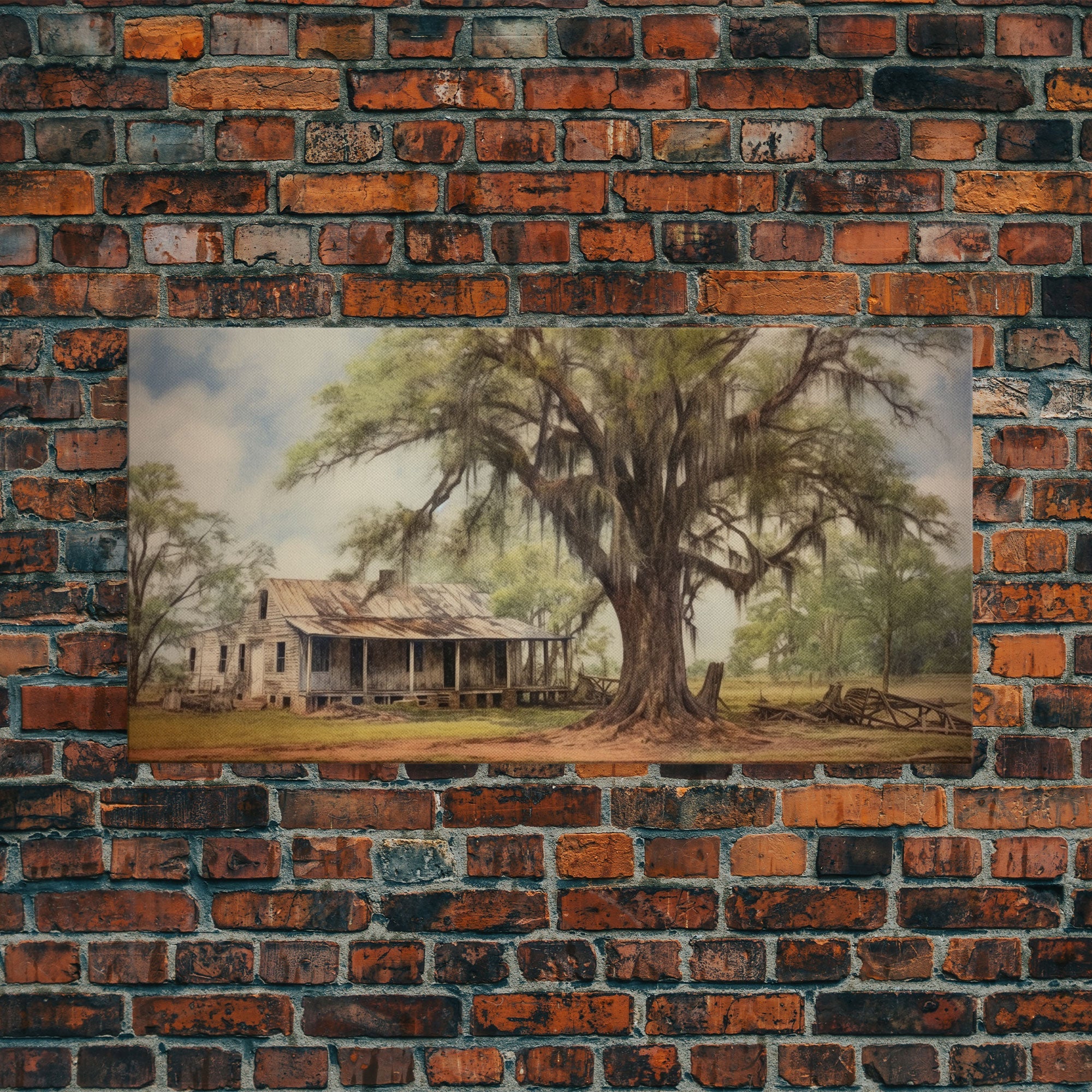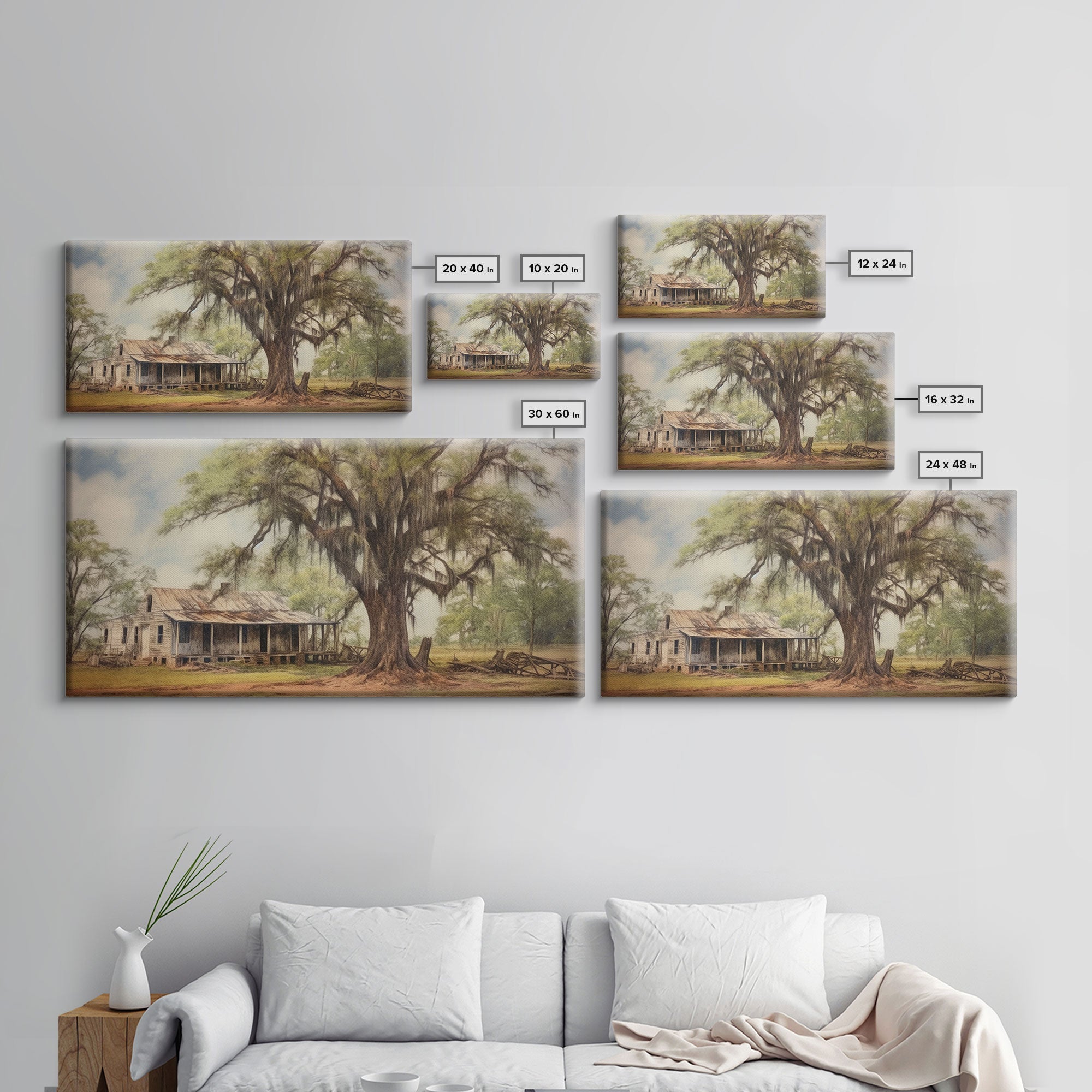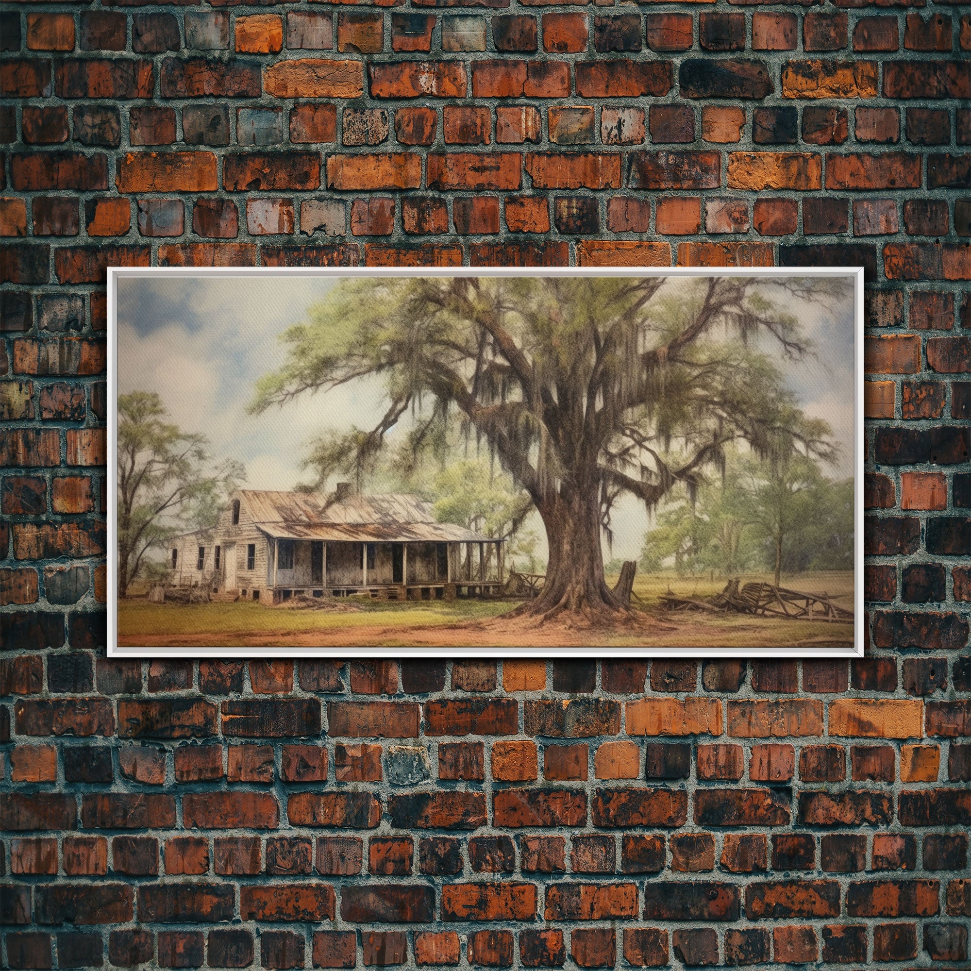 Abandoned House Wall Decor, Rural Wall Decor, Old Farm House Wall Decor, Panoramic Wall Decor, Canvas Print, Wall Art, Framed Canvas Art