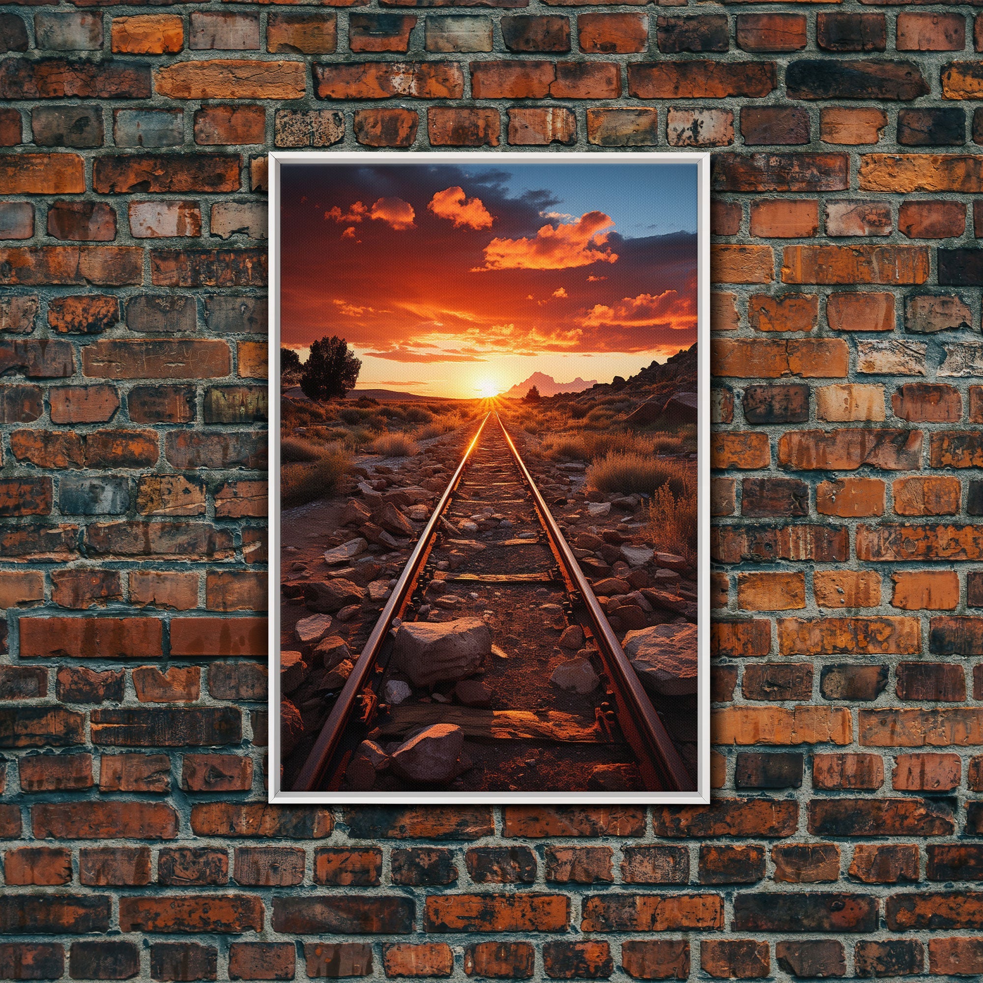 Abandoned Train Tracks Somewhere In The Arizona Desert, Framed Canvas Print, Western Decor