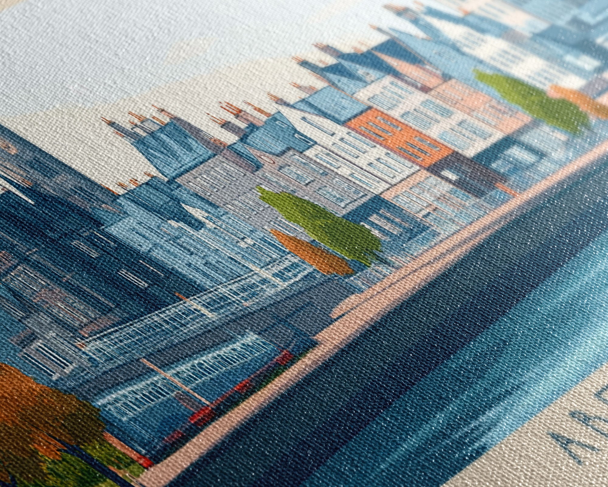 Aberdeen, Scotland Panoramic Travel Poster Canvas Print, Aberdeen, Scotland Painting, Scotland Art, Aberdeen Panoramic Travel Art, Travel Painting