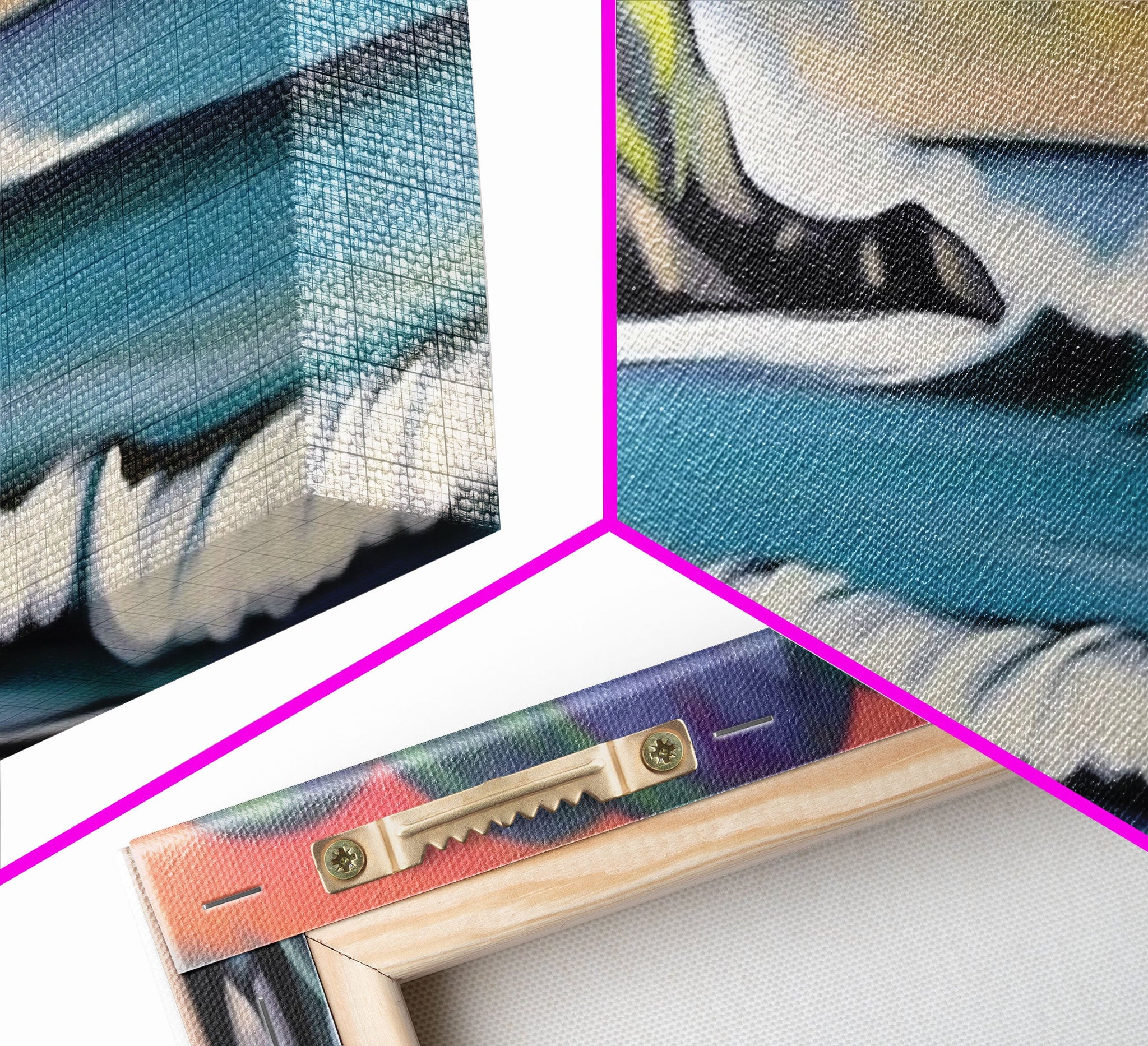 Hello and thank you for taking the time to view our modern high quality giclée artwork! Printed on extremely durable 350 GSM canvas material with ECO friendly archival grade ink, then hand stretched and stapled over premium, FSC certified and shrink resistant frames. Designed and built to last a lifetime.