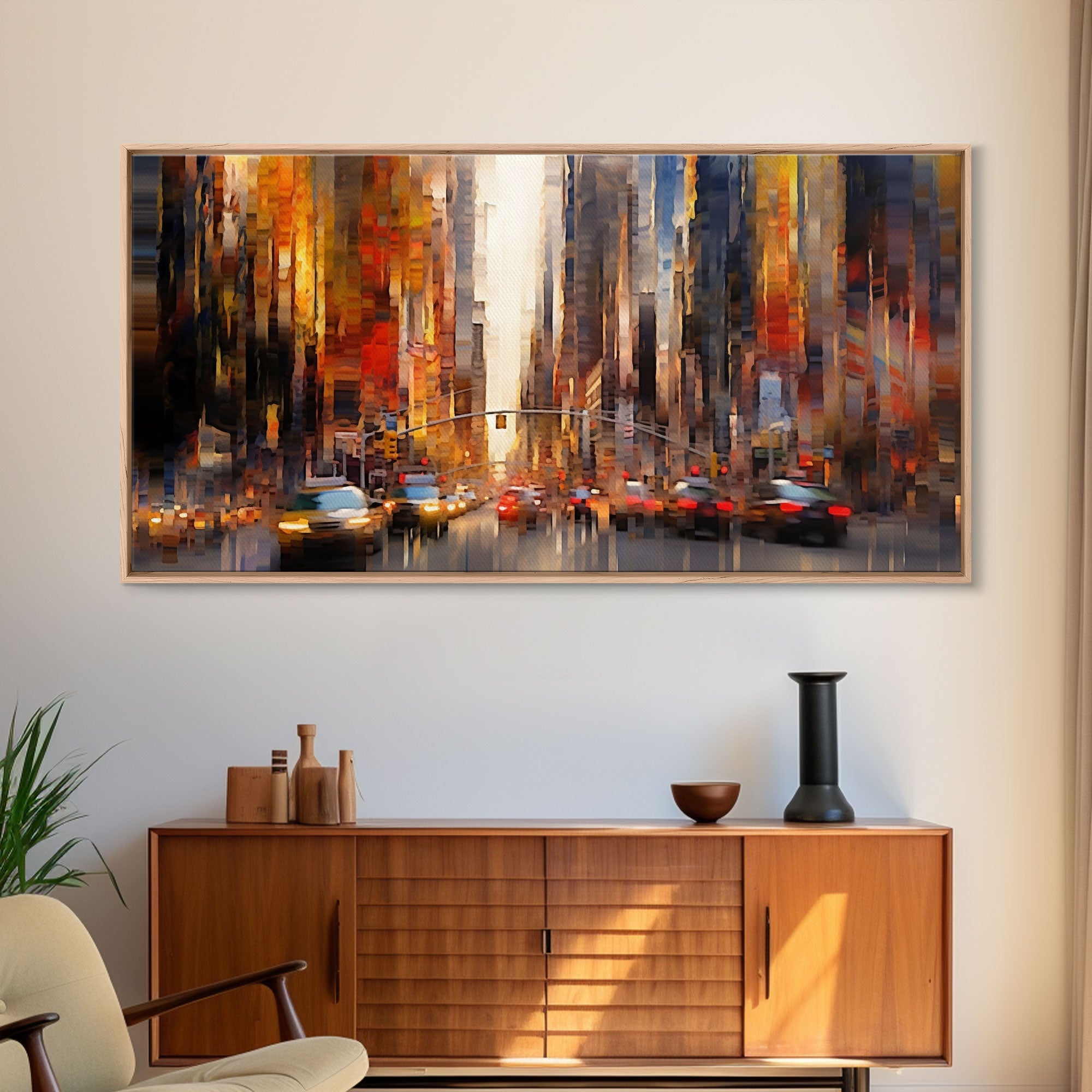 Abstract Cityscape Wall Art, City Wall Decor, Urban Art, Traffic Wall Art, Panoramic Wall Decor, Canvas Print, Wall Art, Framed Canvas Art