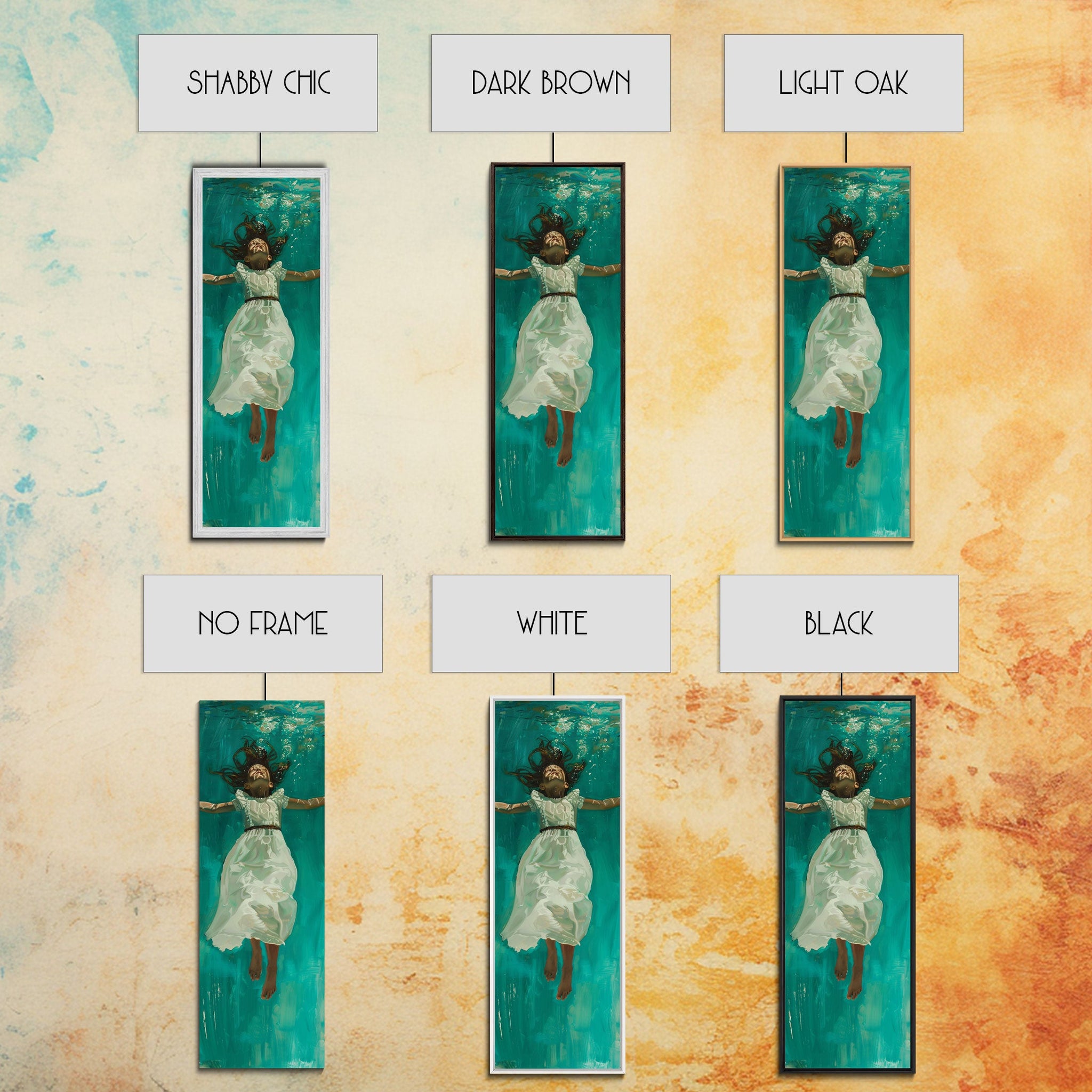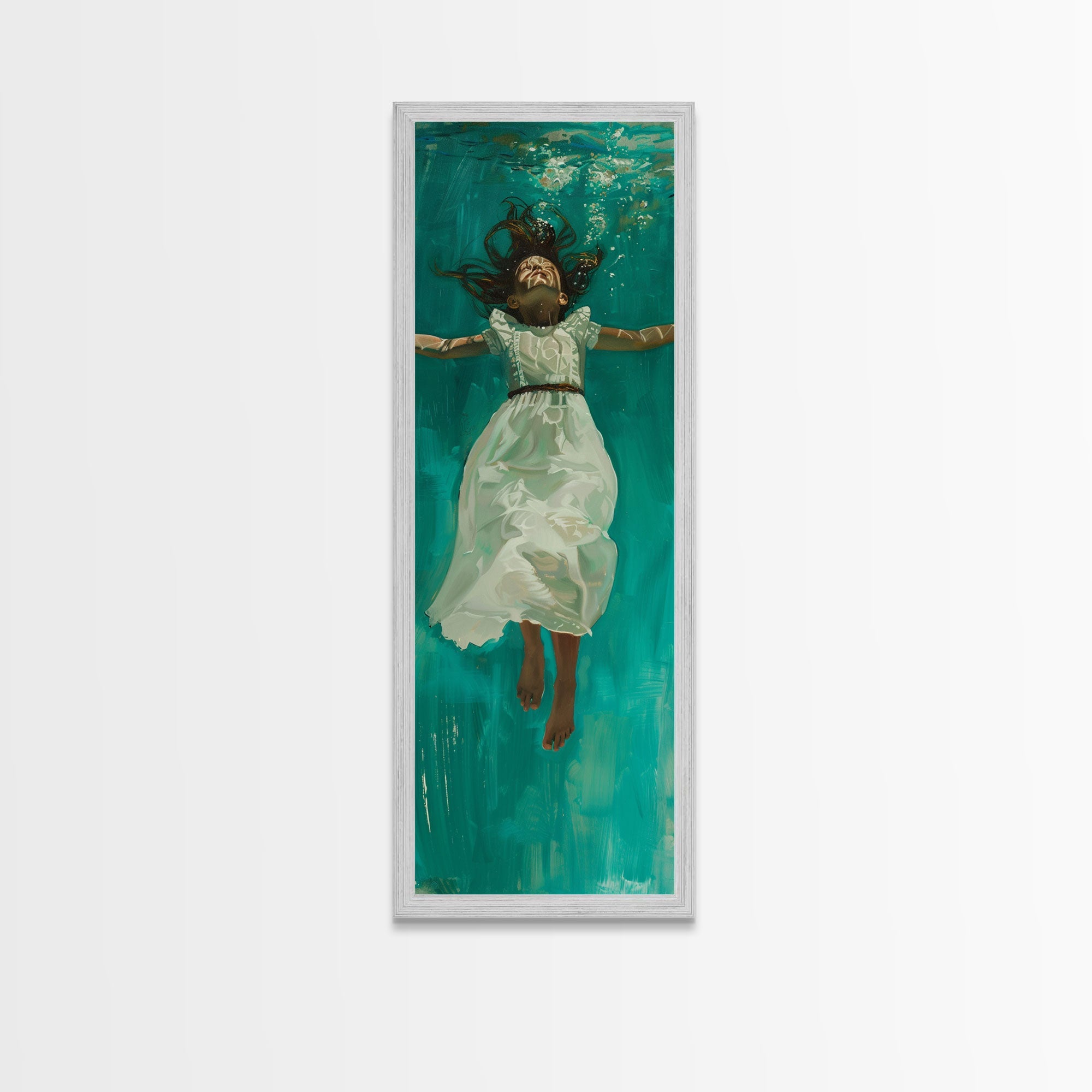 Abstract Modern Canvas Art of Woman Underwater, Ocean Wall Art, Coastal Wall Art Print, Oversized Tall and Narrow Canvas Art
