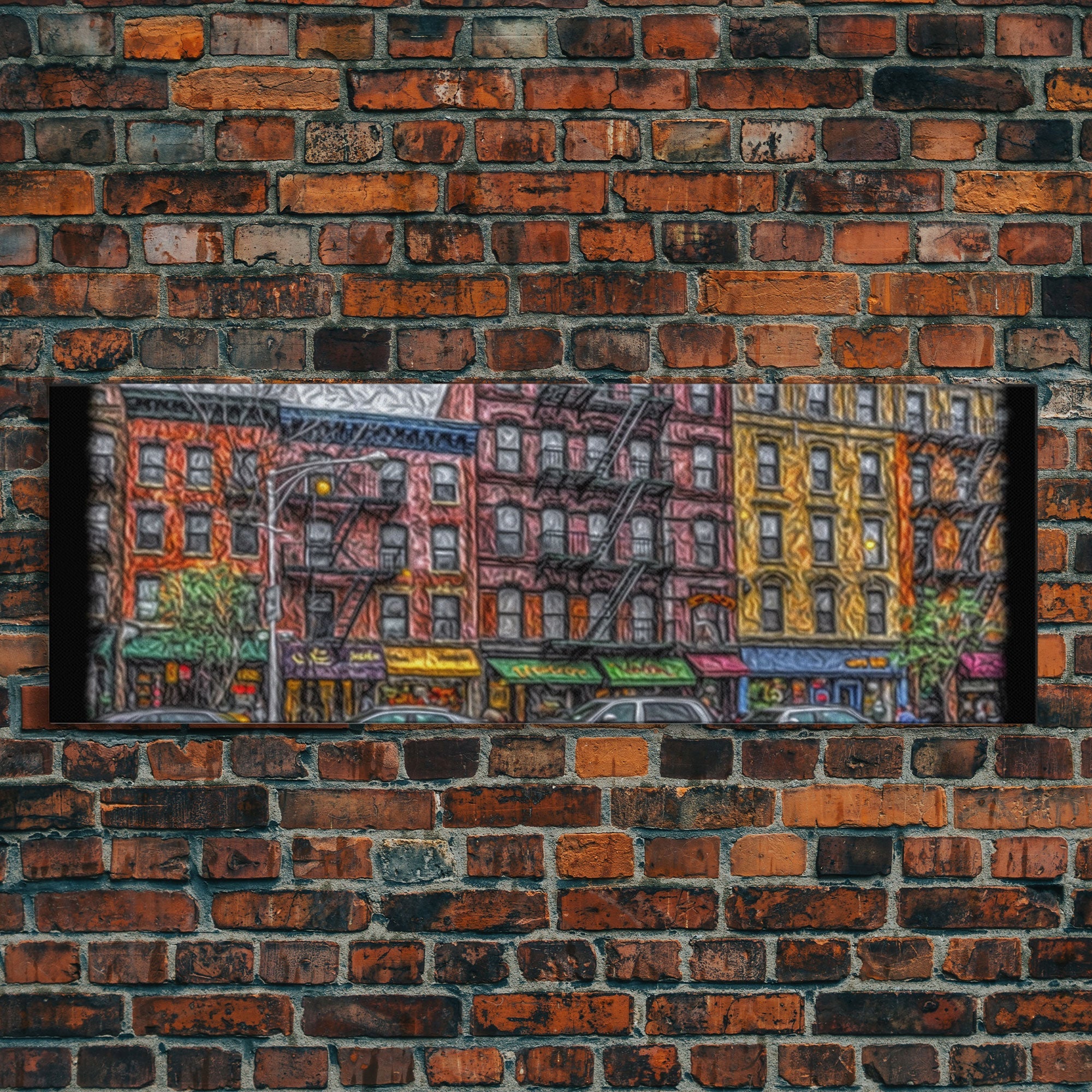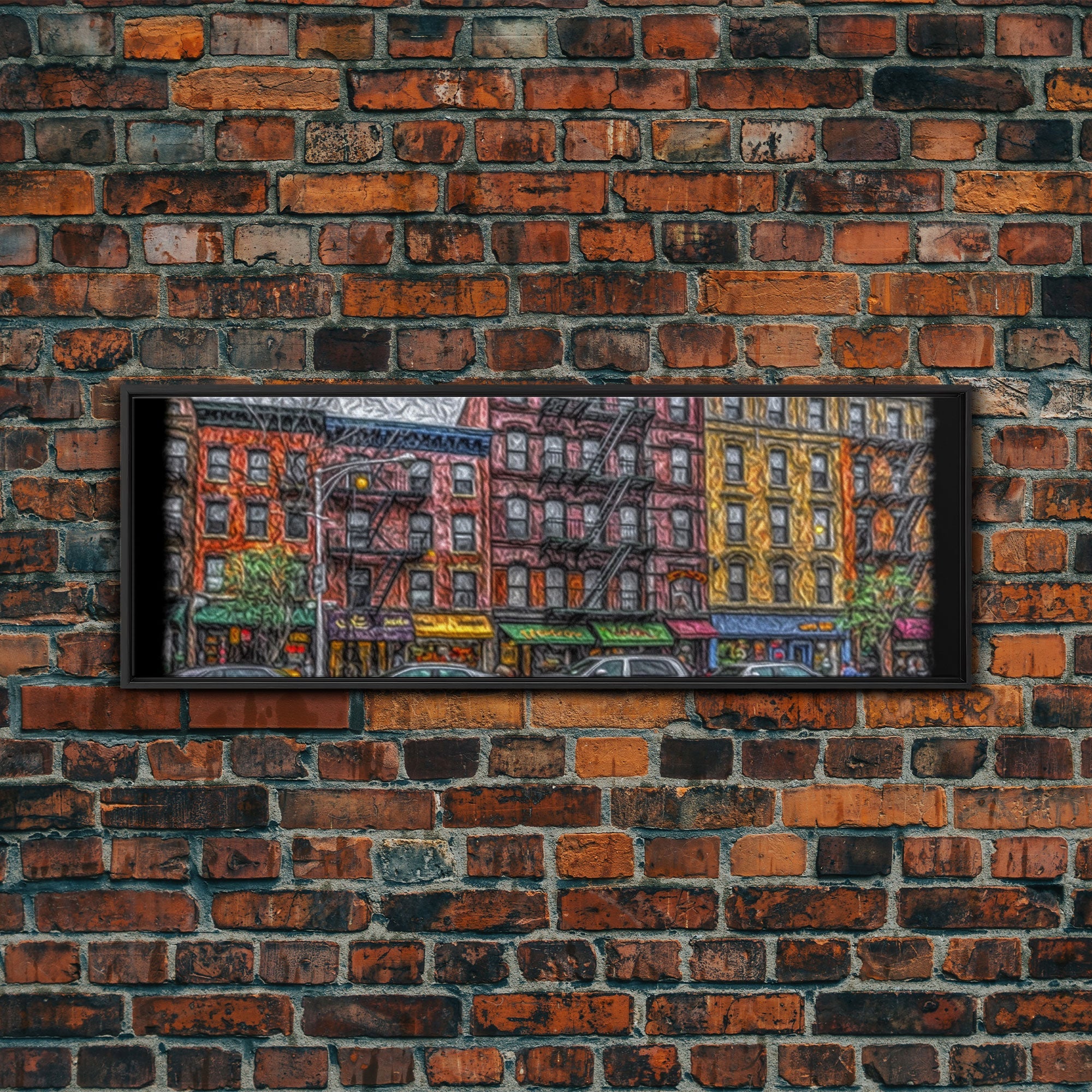 Abstract Row Of Buildings City Canvas Print, Large Urban Art Print, Cityscape Art, Vibrant Art, Panoramic, Wall Art, Canvas Print