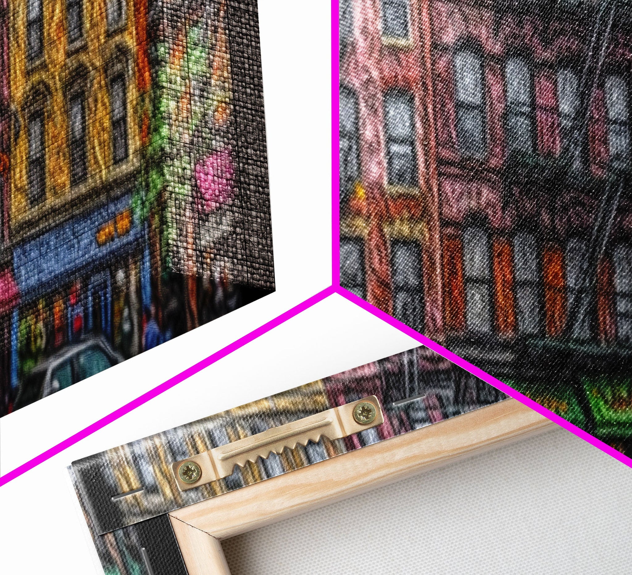 Hello and thank you for taking the time to view our modern high quality giclée artwork! Printed on extremely durable 350 GSM canvas material with ECO friendly archival grade ink, then hand stretched and stapled over premium, FSC certified and shrink resistant frames. Designed and built to last a lifetime.