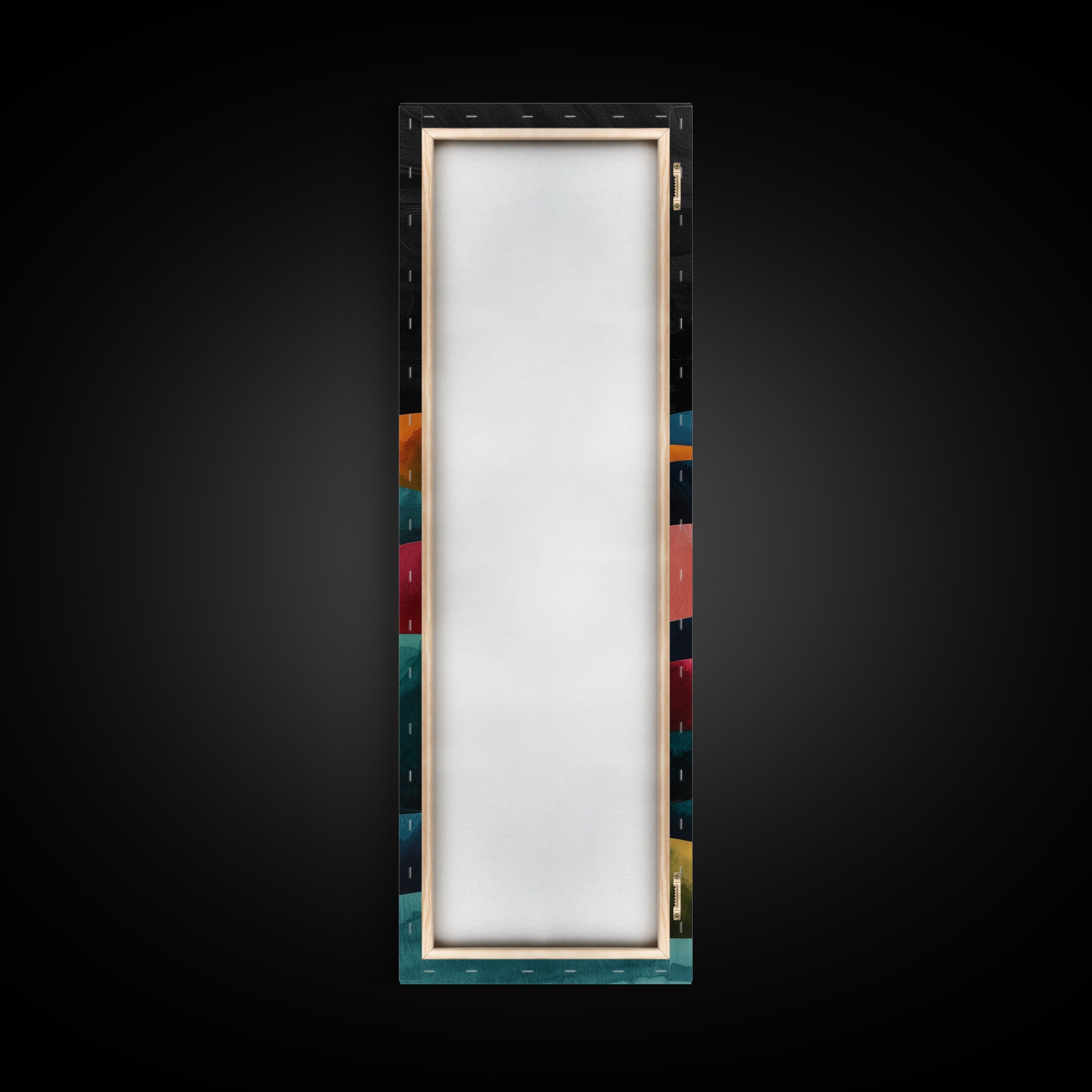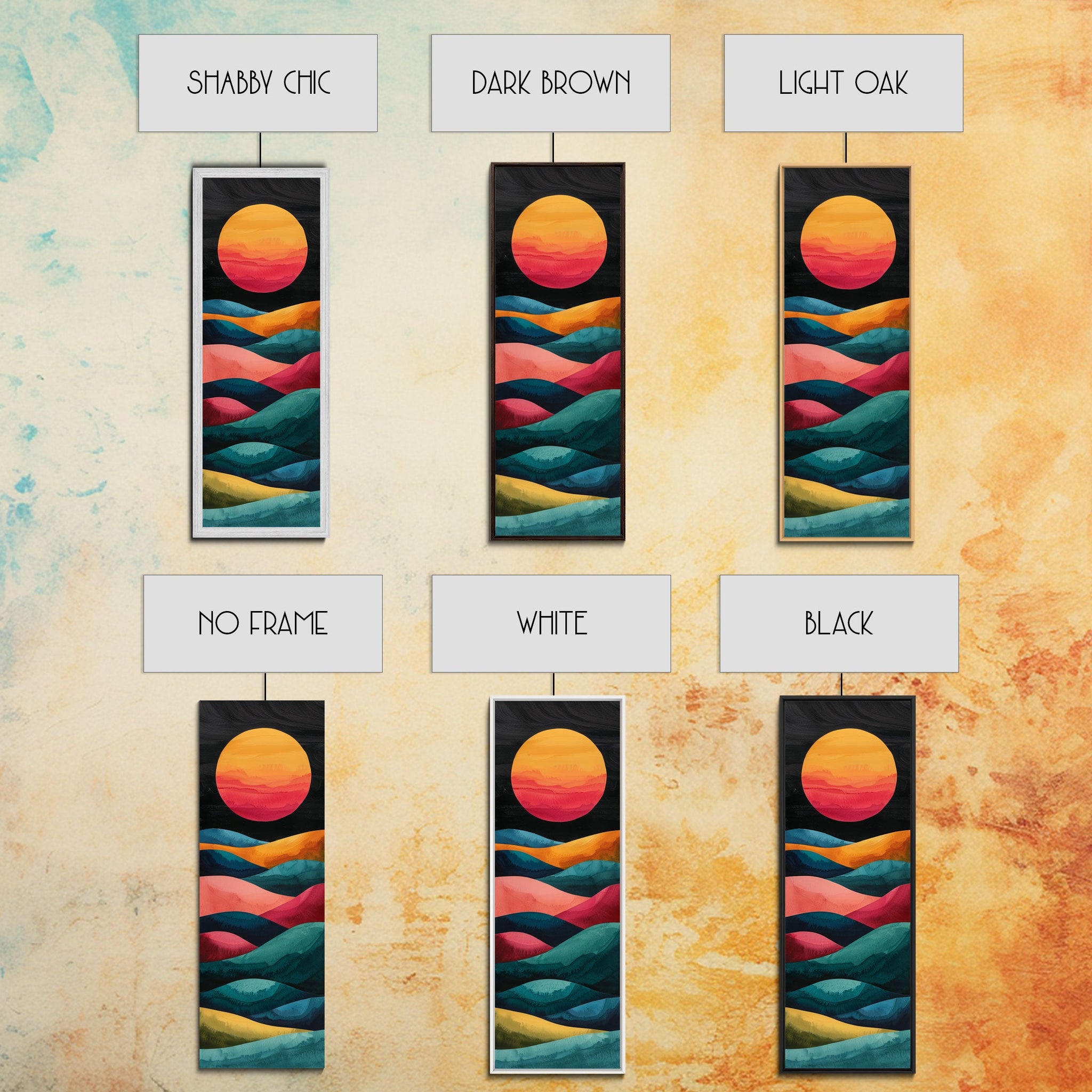 Abstract Sunset Over Hills Midcentury Modern Art - Framed Canvas Print, Boho Art, Skinny Art, Living Room Art, Bedroom Decor, Minimalist Landscape