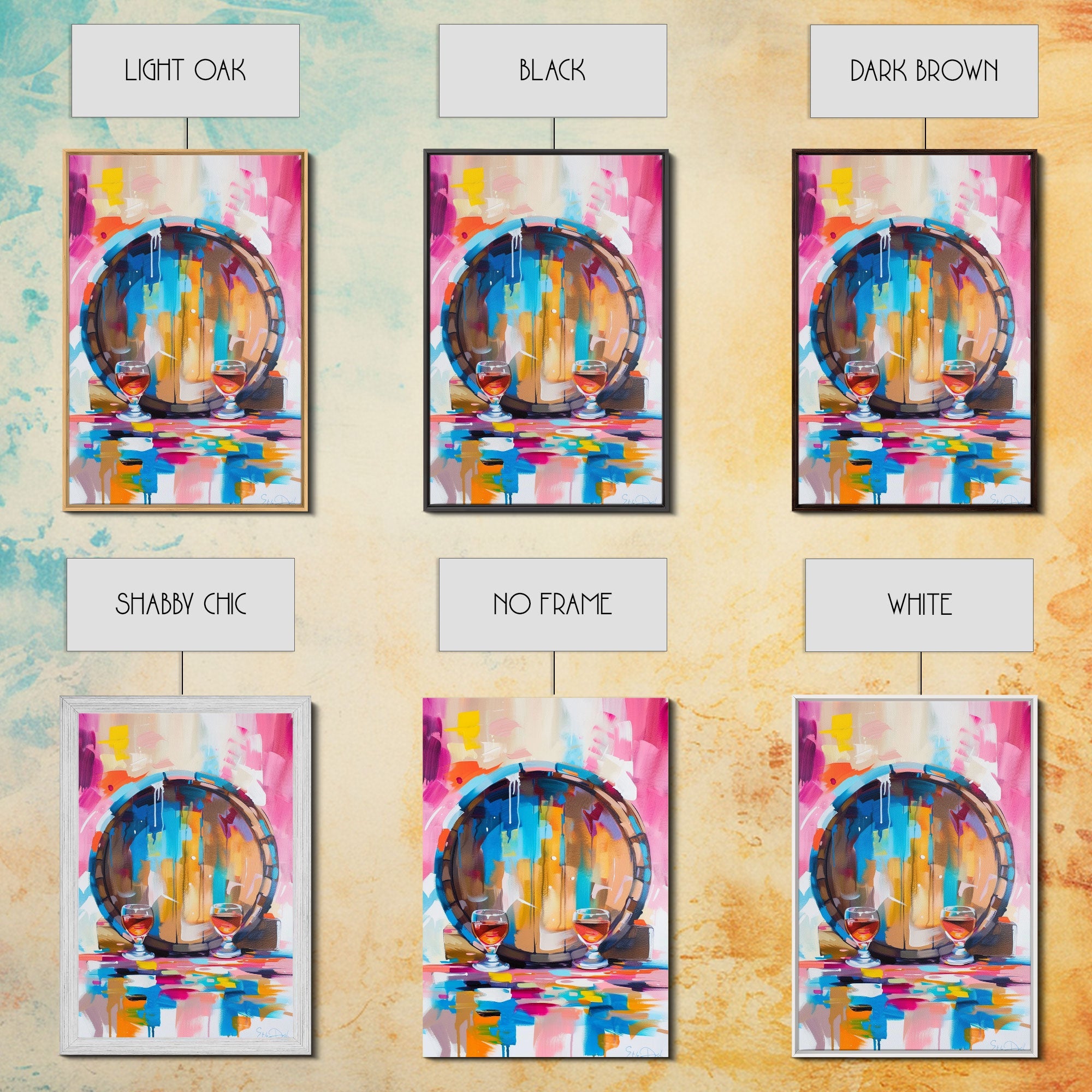 Abstract Wine Barrel with Glasses - Framed Canvas Print, Modern Wine Art, Bar Decor, Wine Lover's Gift