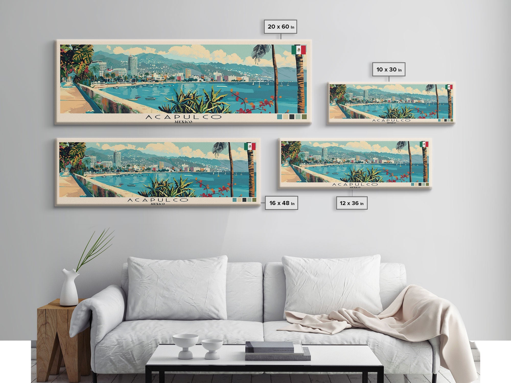 Acapulco, Mexico Panoramic Canvas Print, Acapulco, Mexico Painting, Mexico Art, Acapulco Travel Poster, Travel Art, Guest Room Painting
