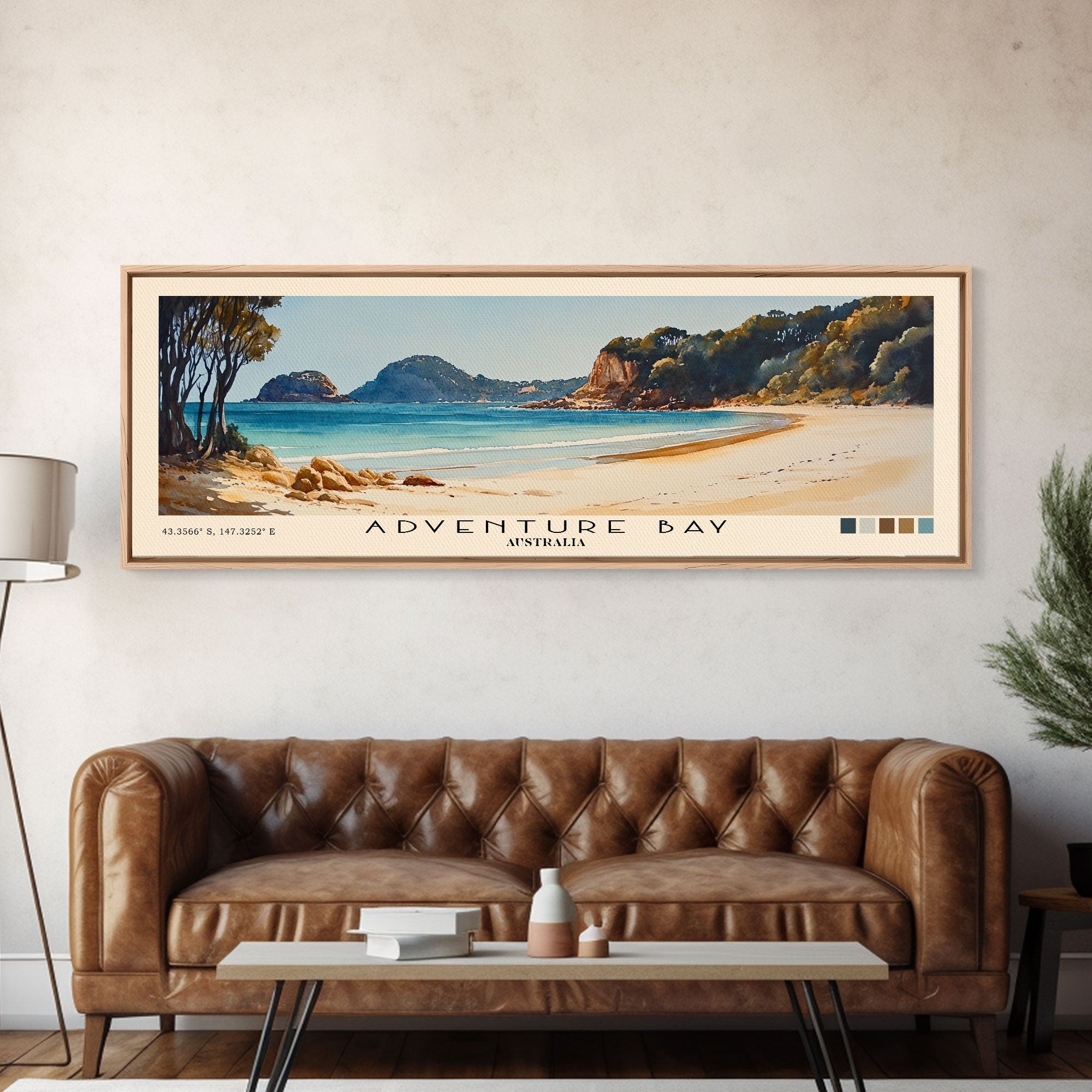 Adventure Bay, Australia Watercolor Beach Print, Vacation Gift, Australia Wall Art, Framed Canvas Print, Framed Beach Painting
