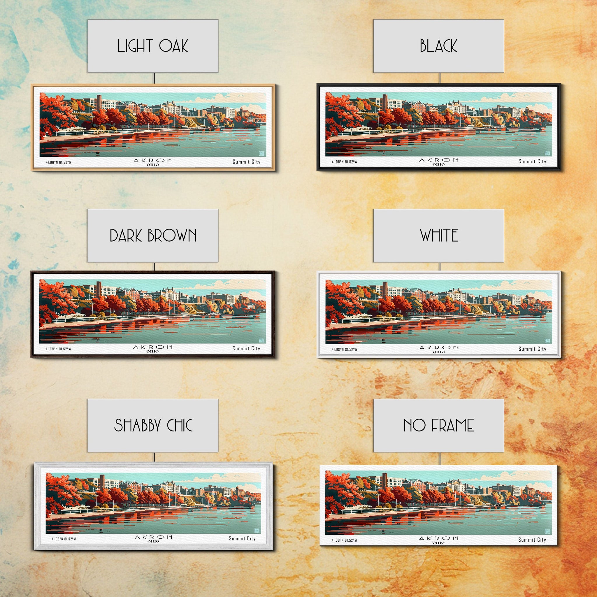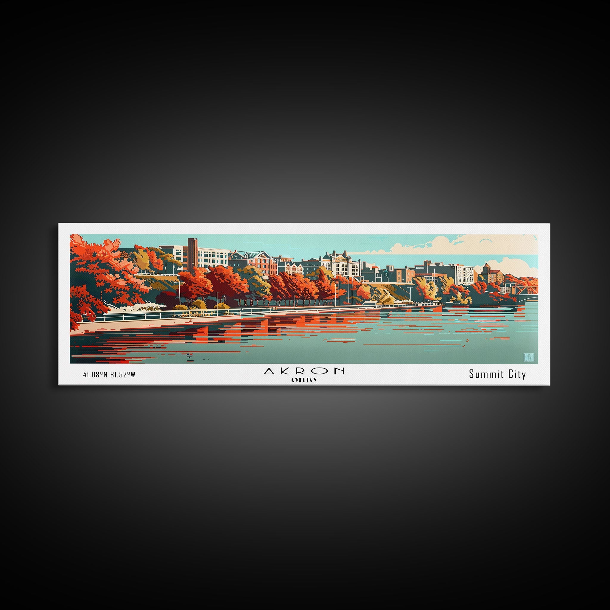 Akron Ohio Panoramic Painting, Framed Canvas Print, Mid Century Modern Wall Art, Retro Pop Art Travel Poster, Living Room Decor, City Art