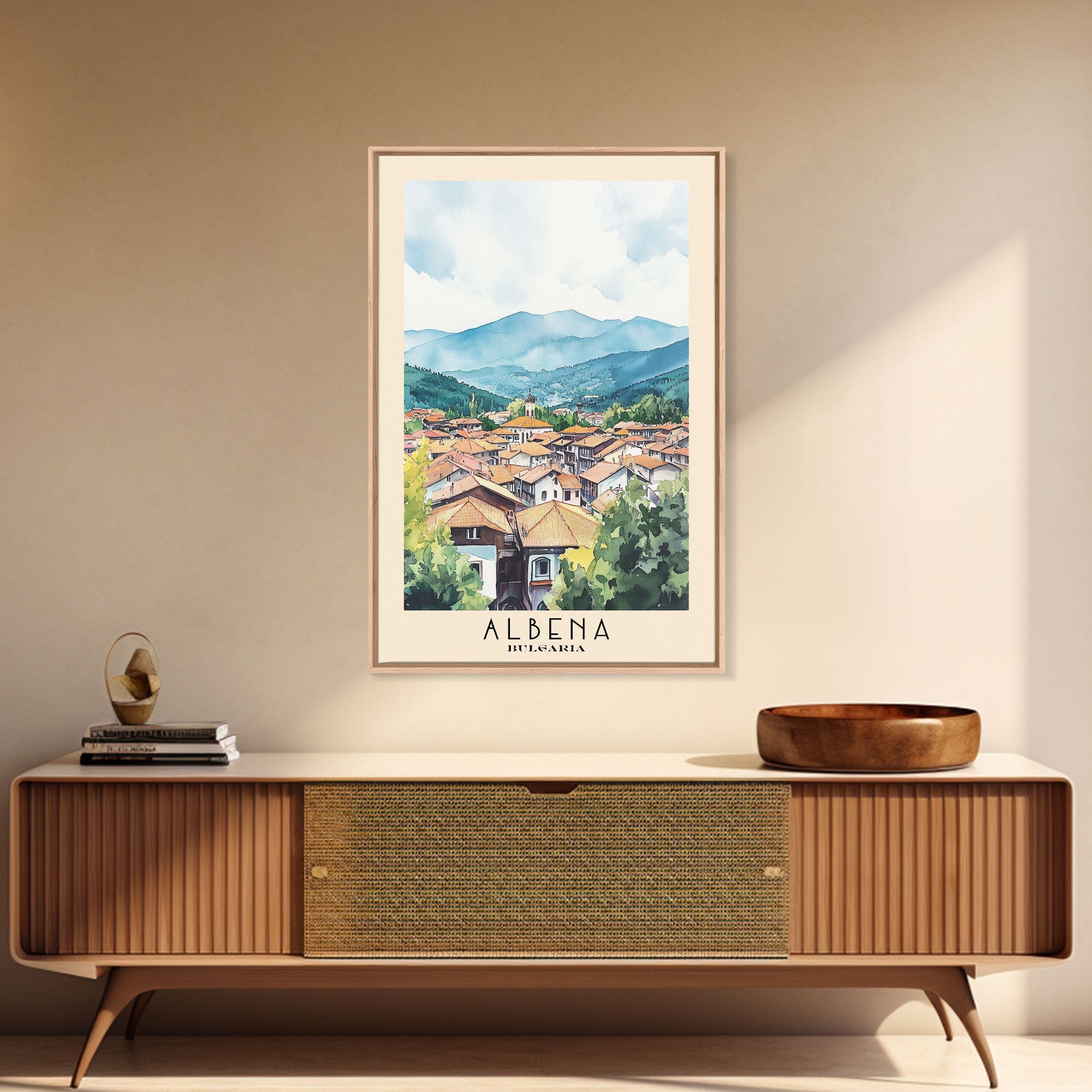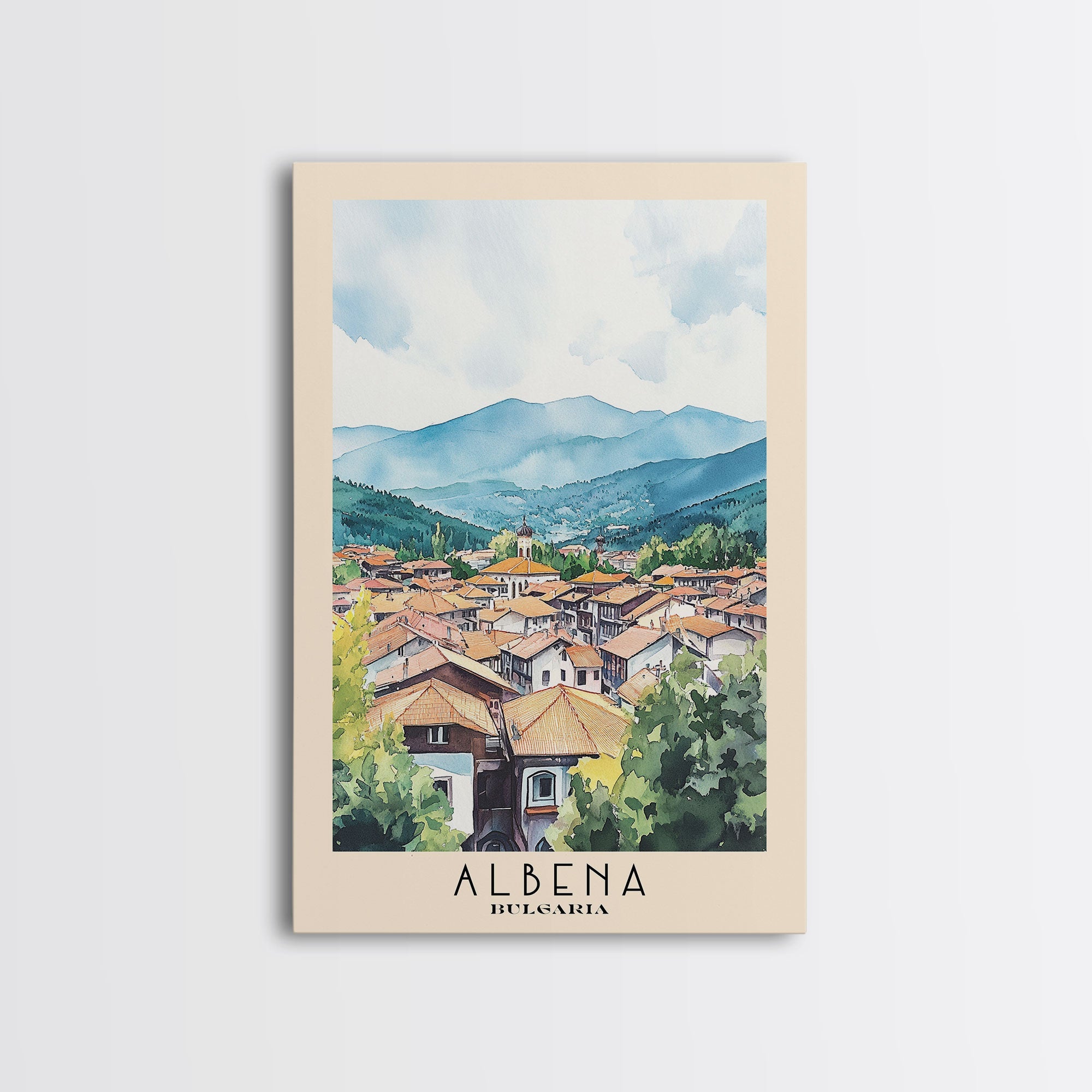 Albena, Bulgaria Watercolor Beach Print, Vacation Gift, Bulgaria Wall Art, Framed Canvas Print, Framed Beach Painting