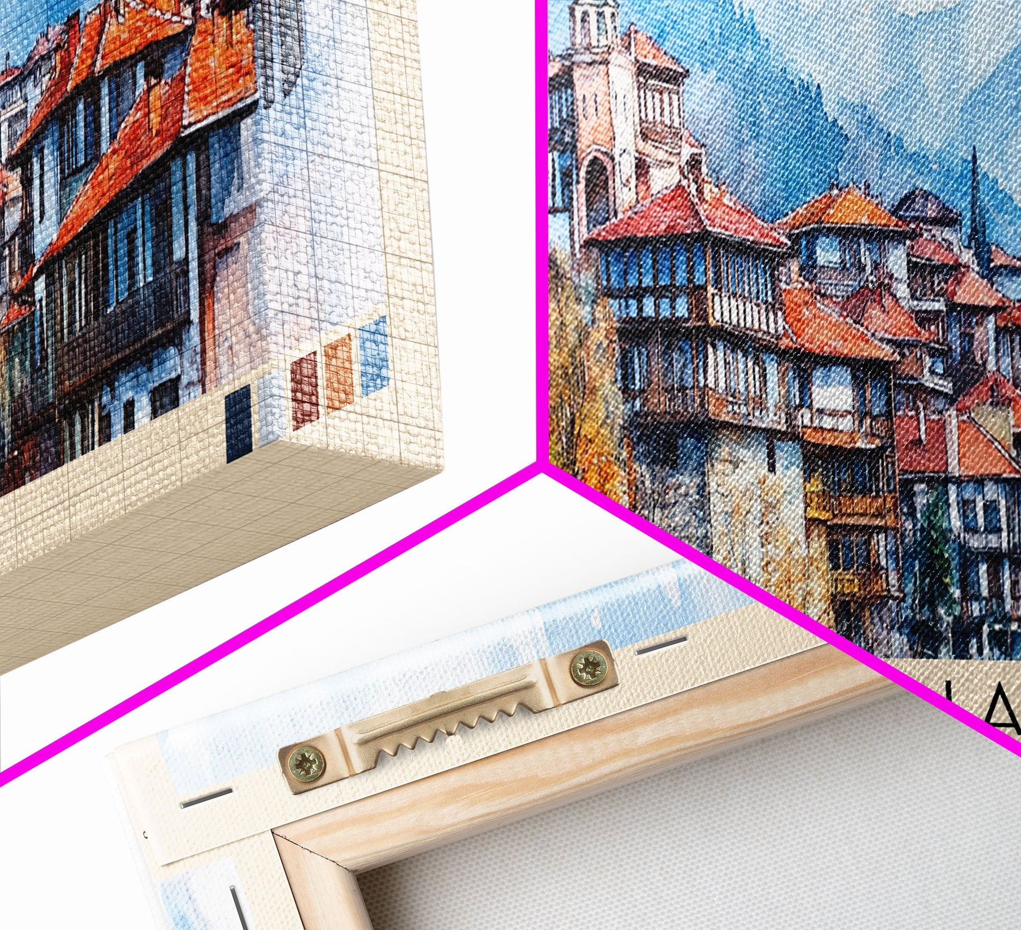 Albena, Bulgaria Watercolor Beach Print, Vacation Gift, Bulgaria Wall Art, Framed Canvas Print, Framed Beach Painting