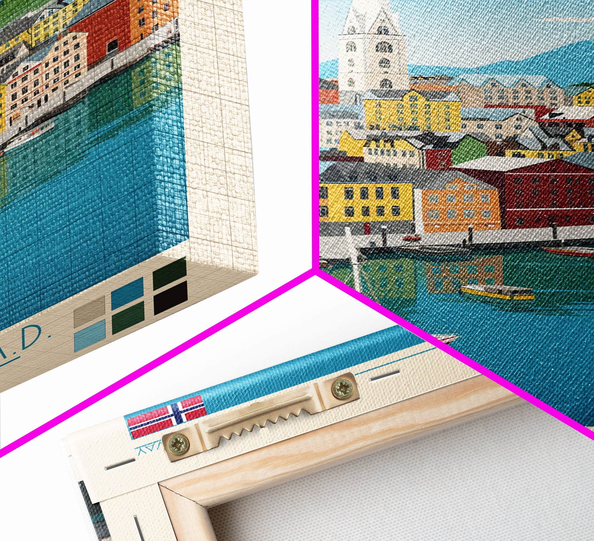 Ålesund Norway Travel Poster Framed Canvas Print, Midcentury Modern Art, Pop Art Wall Decor, Living Room Art, Scenic Wall Art