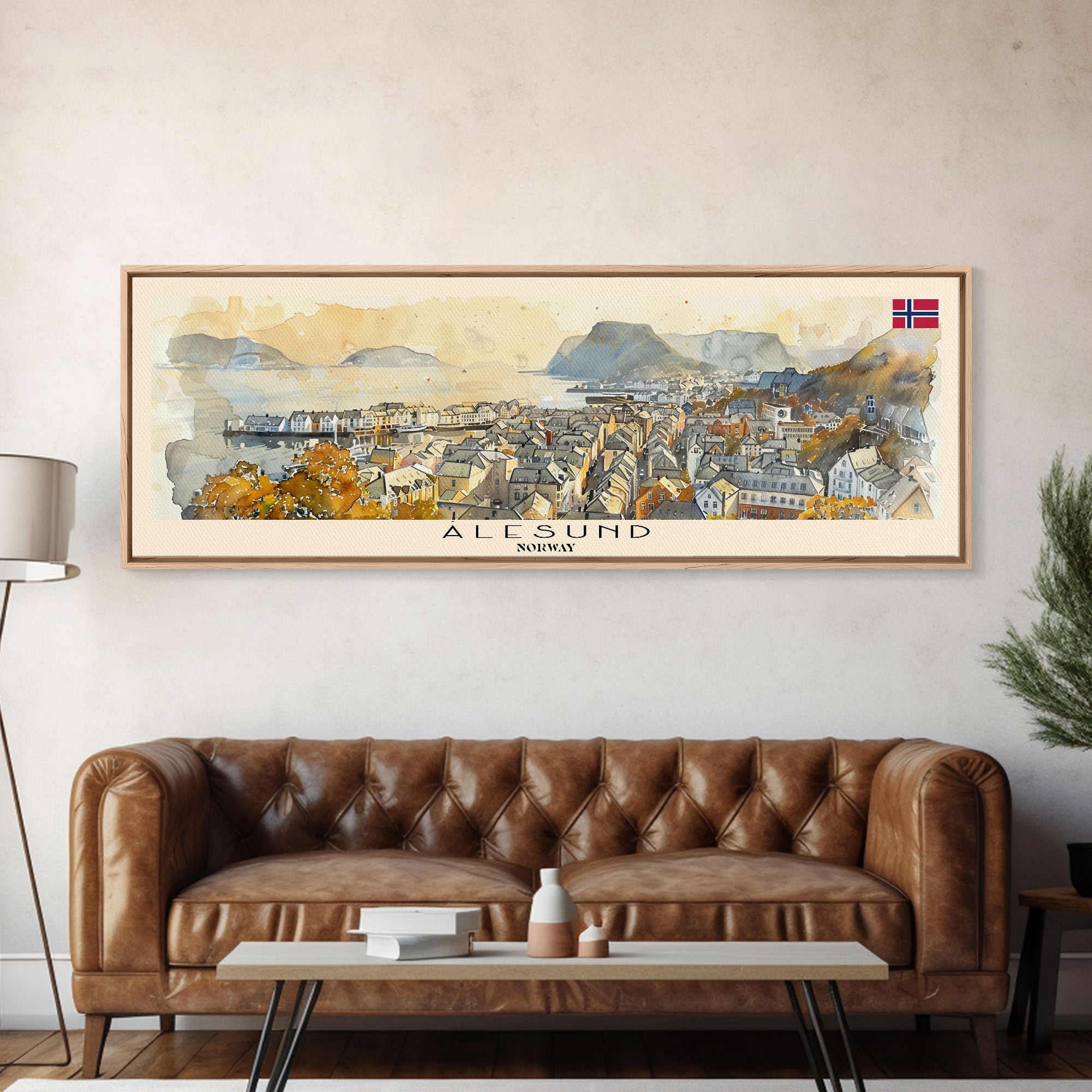 Ålesund Norway Wall Art, Panoramic Travel Poster, Panoramic Framed Canvas Print, City Wall Art, Wall Hanging Home Decor, Travel Art