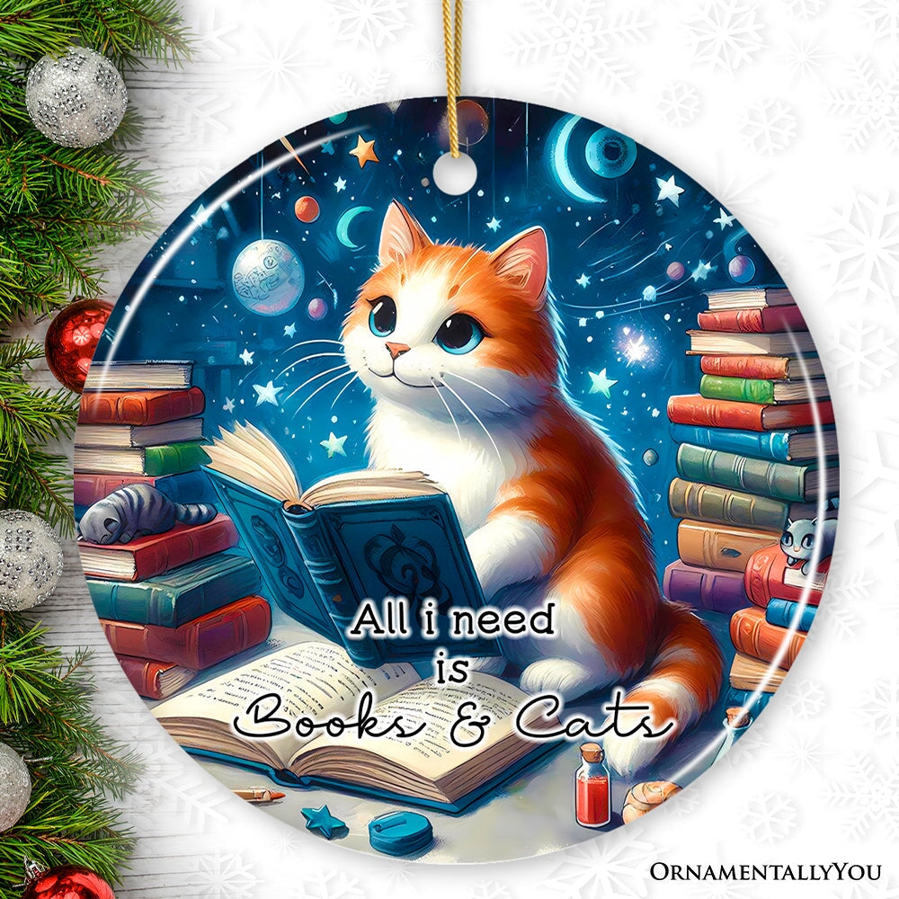 All I Need is Books & Cats Ceramic Ornament, Book Lover Gift of Imagination and the Universe