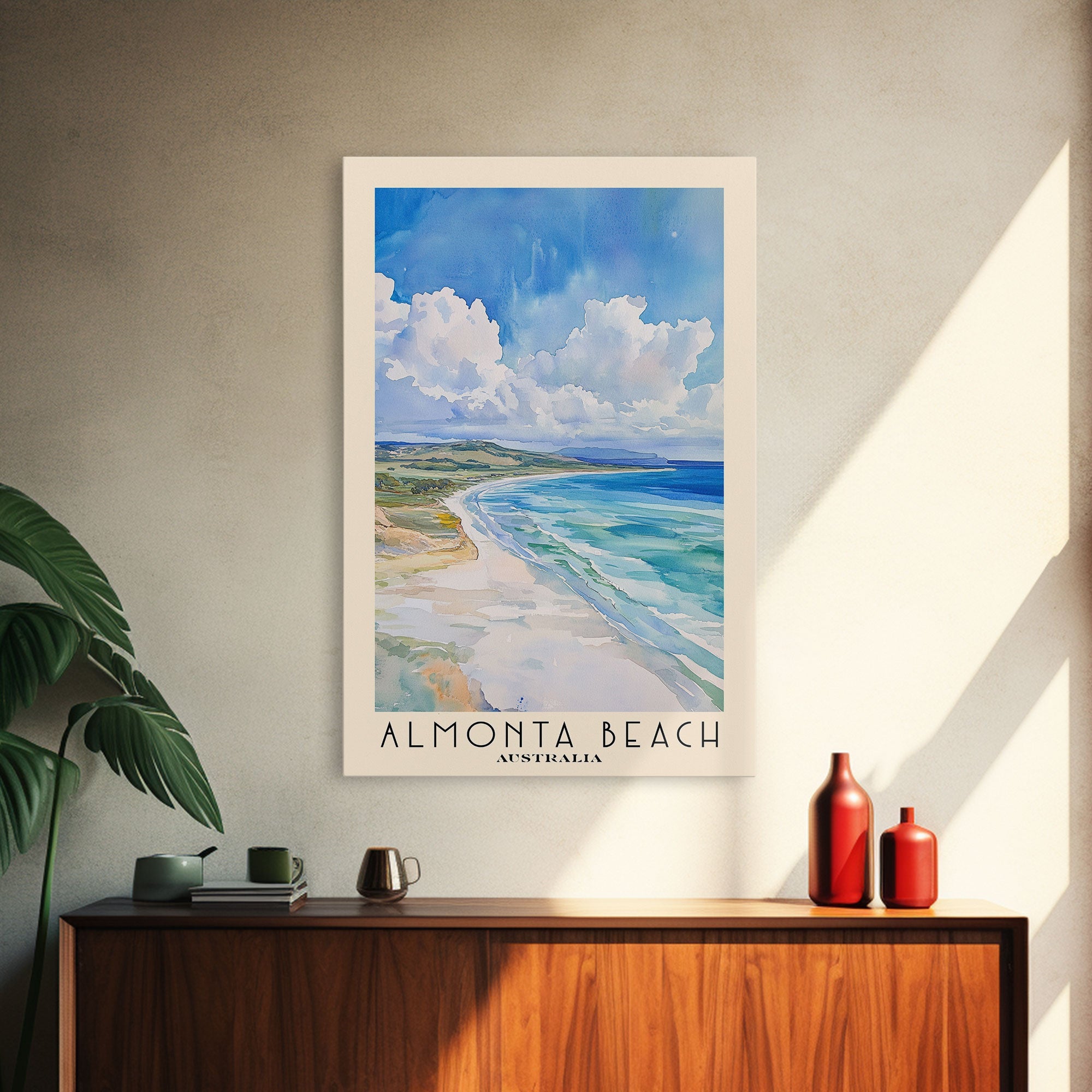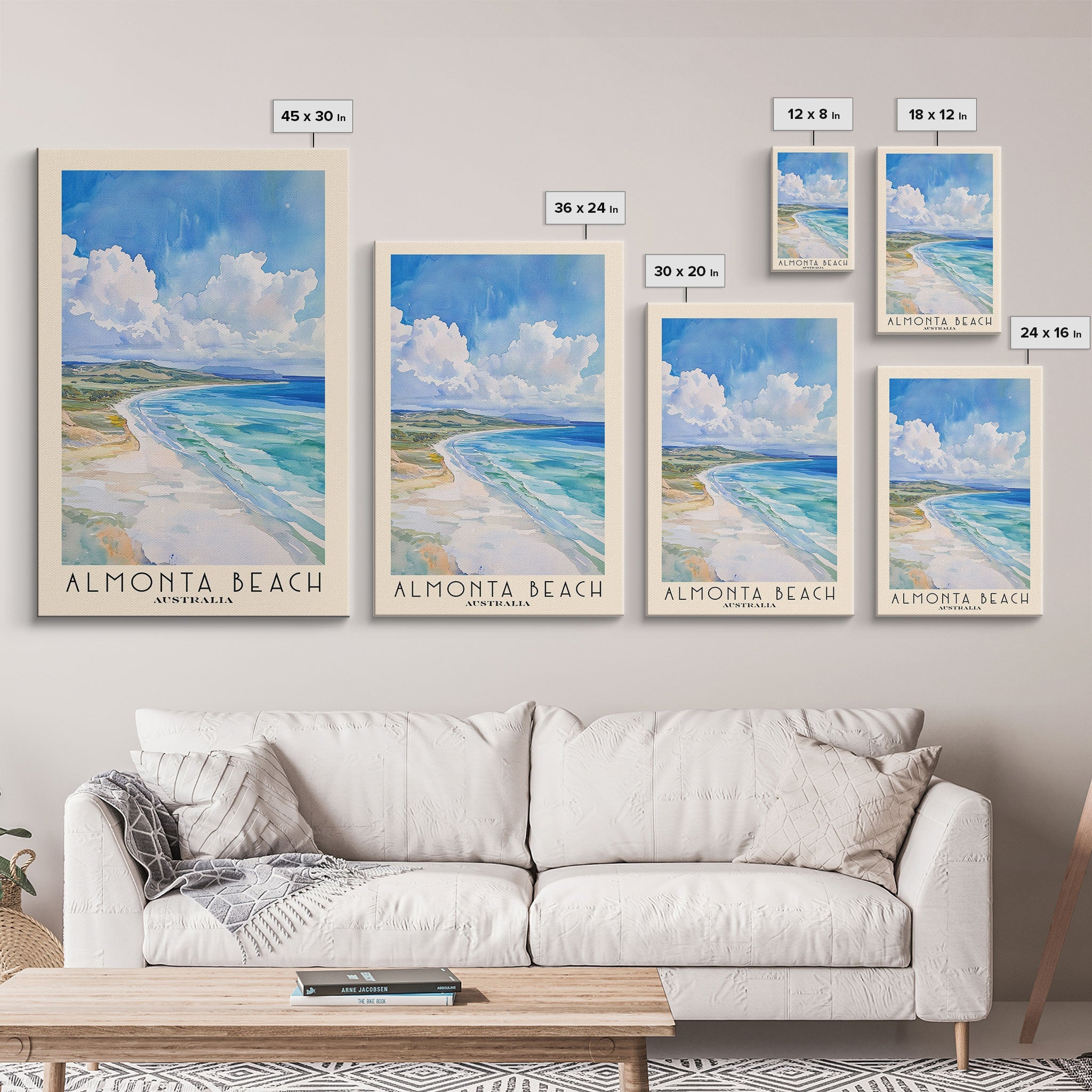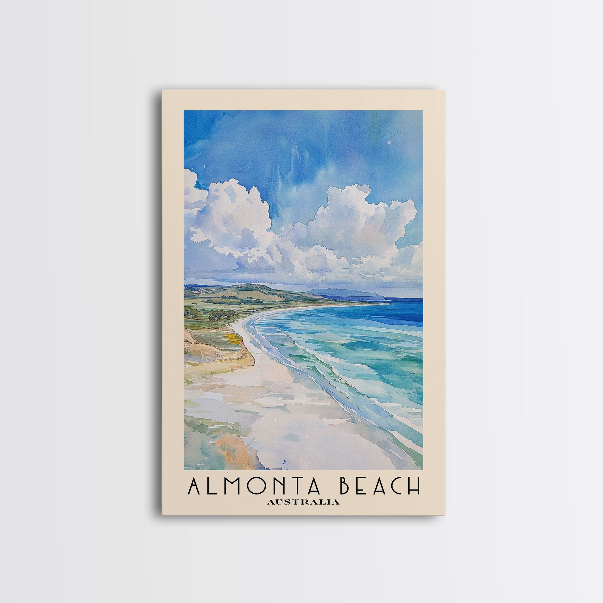 Almonta Beach, Australia Watercolor Beach Print, Vacation Gift, Australia Wall Art, Framed Canvas Print, Framed Beach Painting