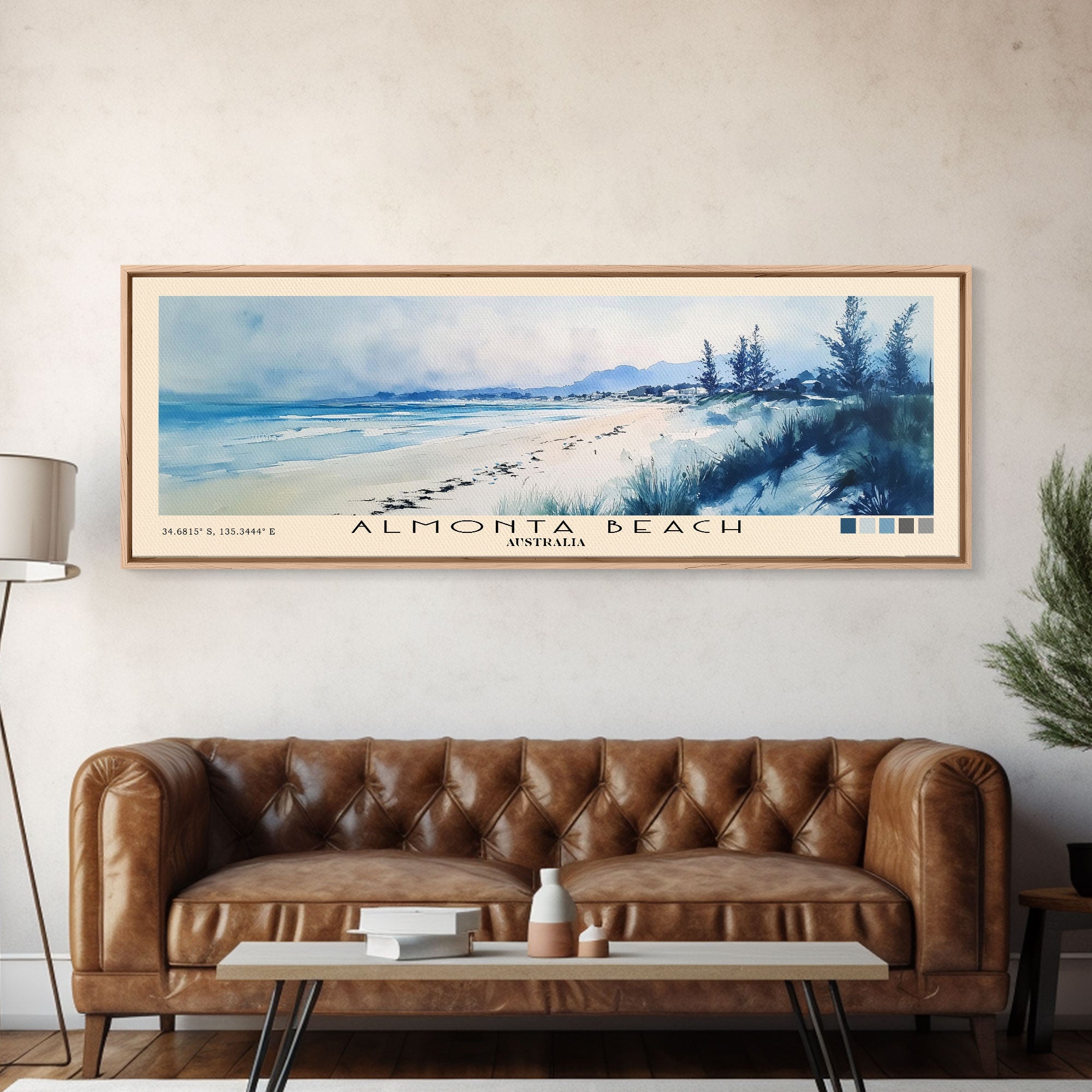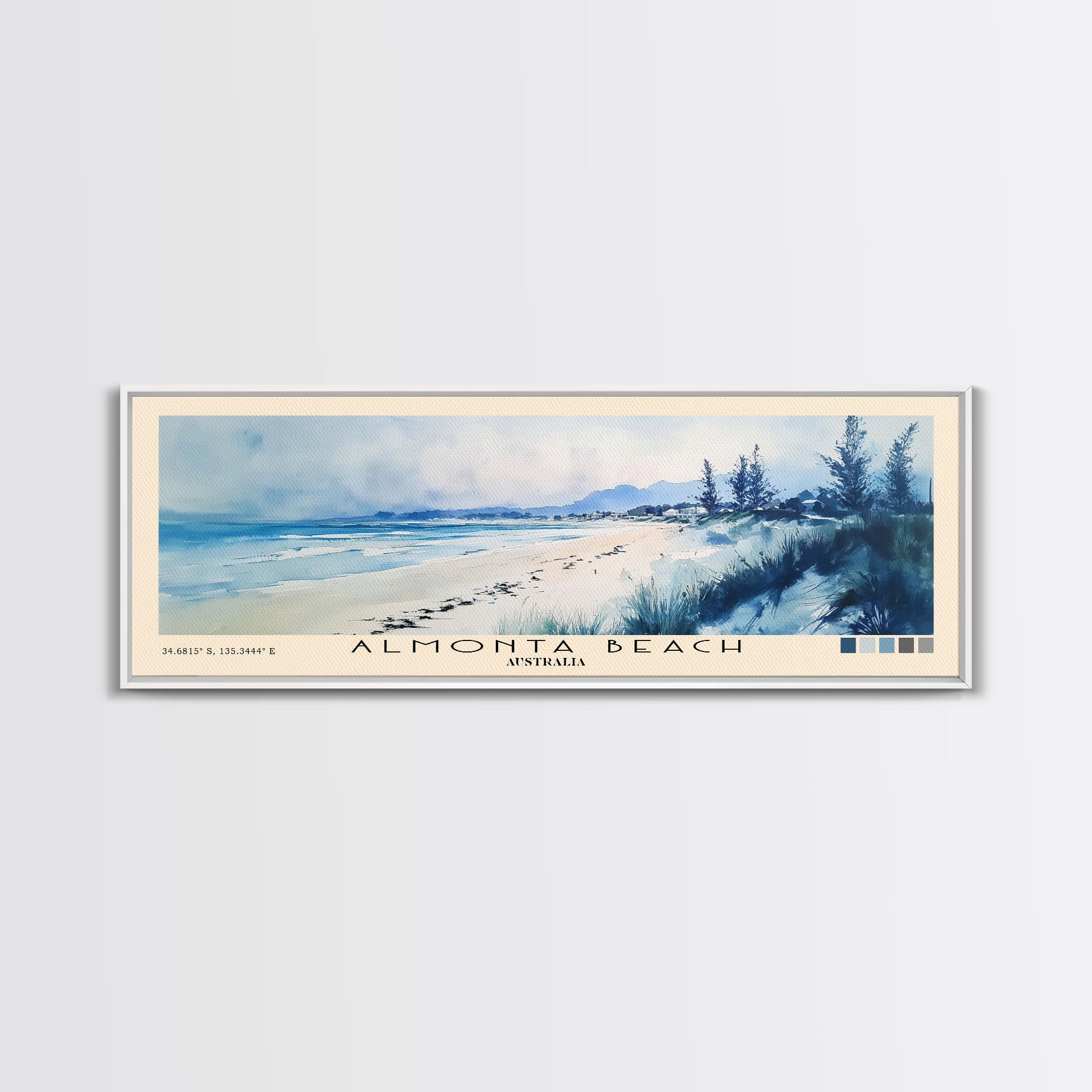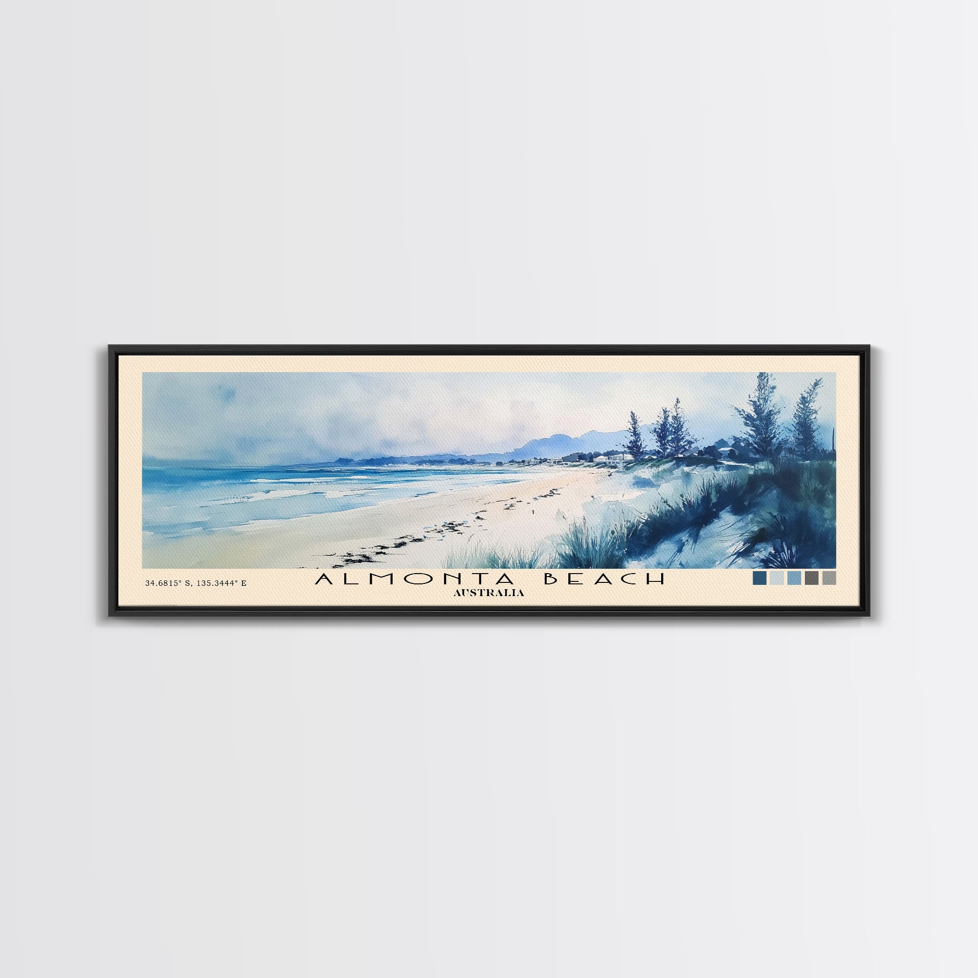 Almonta Beach, Australia Watercolor Beach Print, Vacation Gift, Australia Wall Art, Framed Canvas Print, Framed Beach Painting