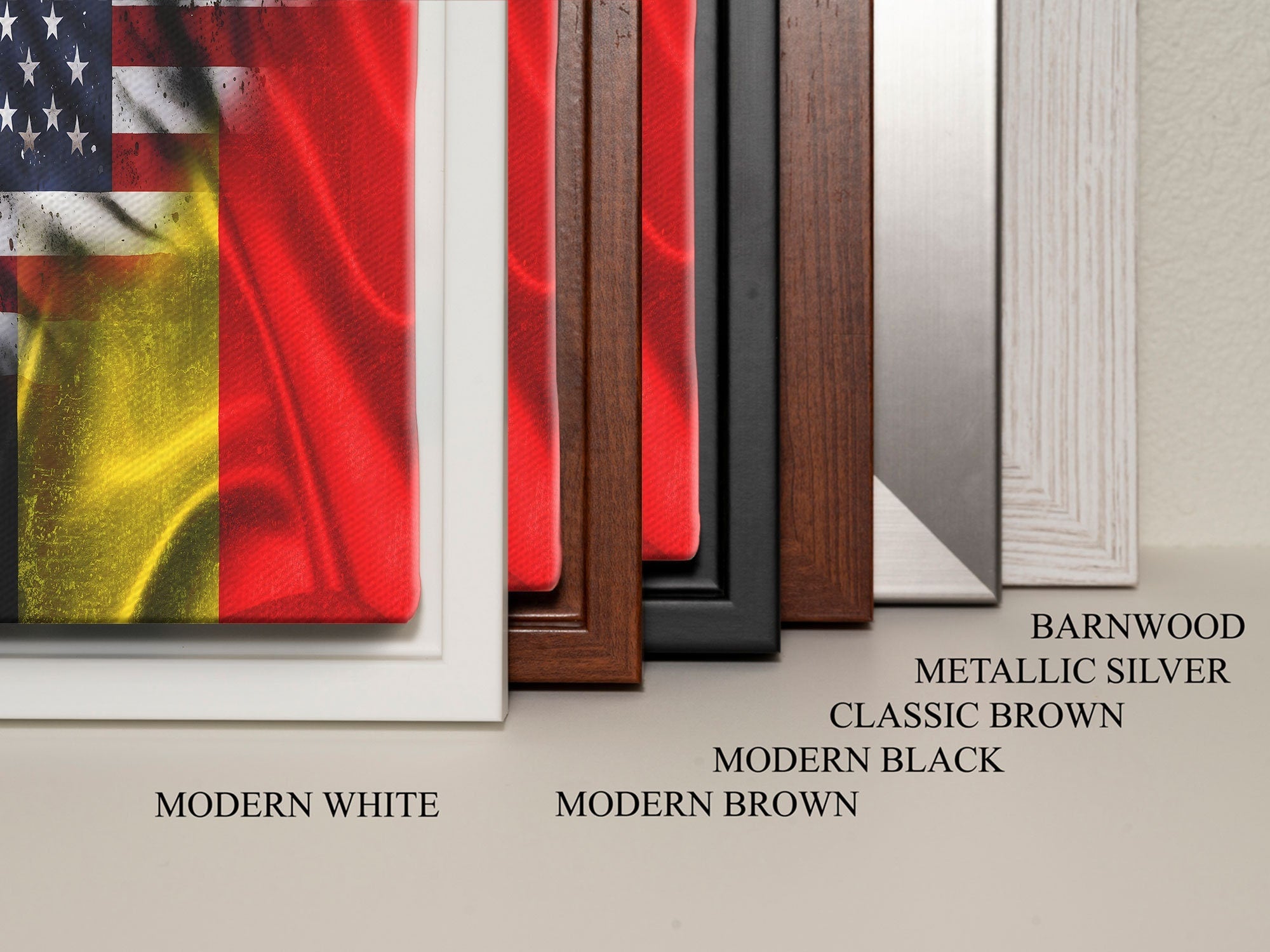 Most of our canvases are made in the USA, with the exception of canvases ordered with the light oak unstained frames, and any large canvases (24x48, 30x60, 16x48 and 20x60) ordered WITH a frame. These are temporarily made in and shipped from Europe, while we try to find a more consistent supplier in the USA.