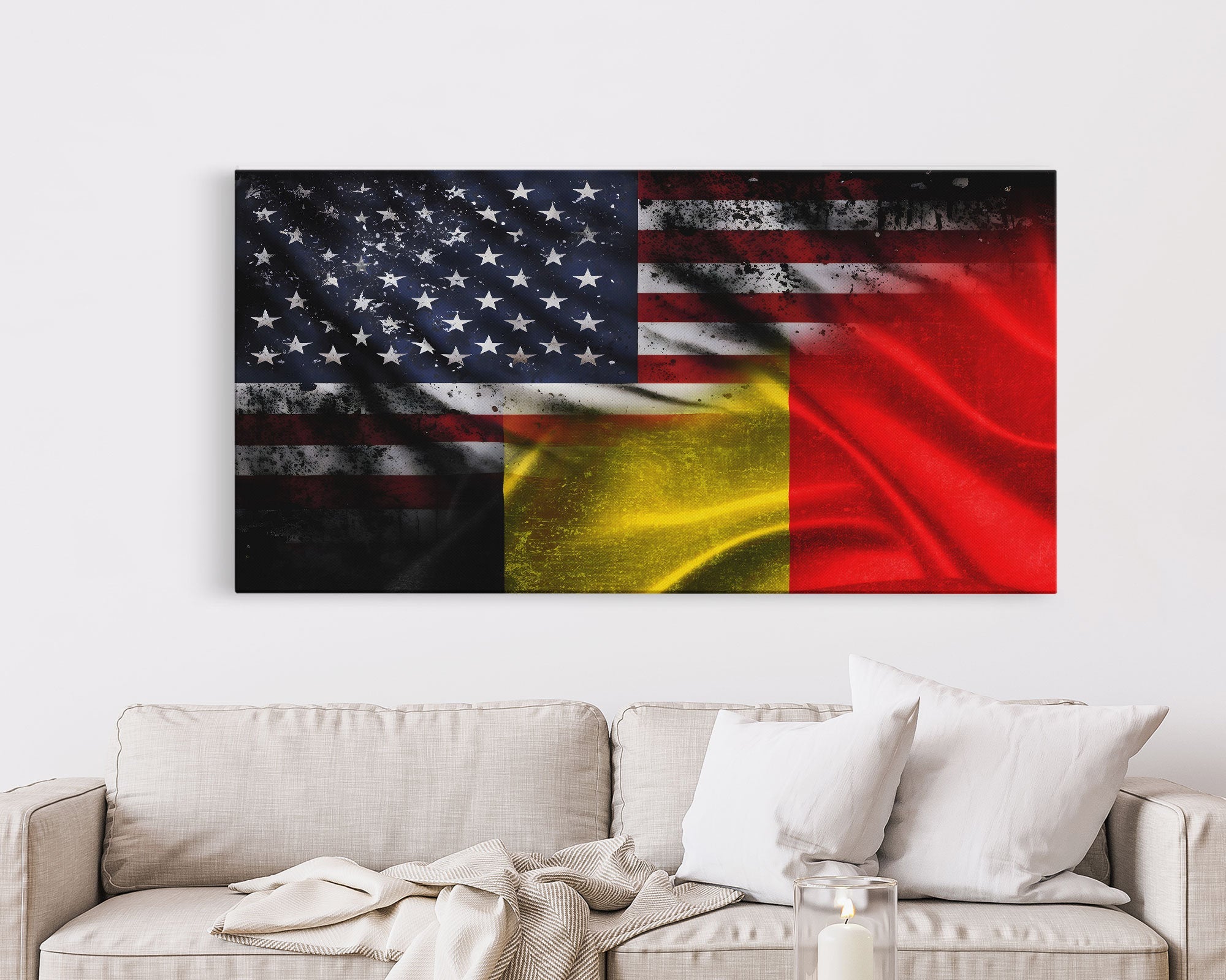 American and Belgium Flag Mashup, Belgium Flag, Framed Canvas Print, Framed American Flag Art, Patriotic Immigrant Art