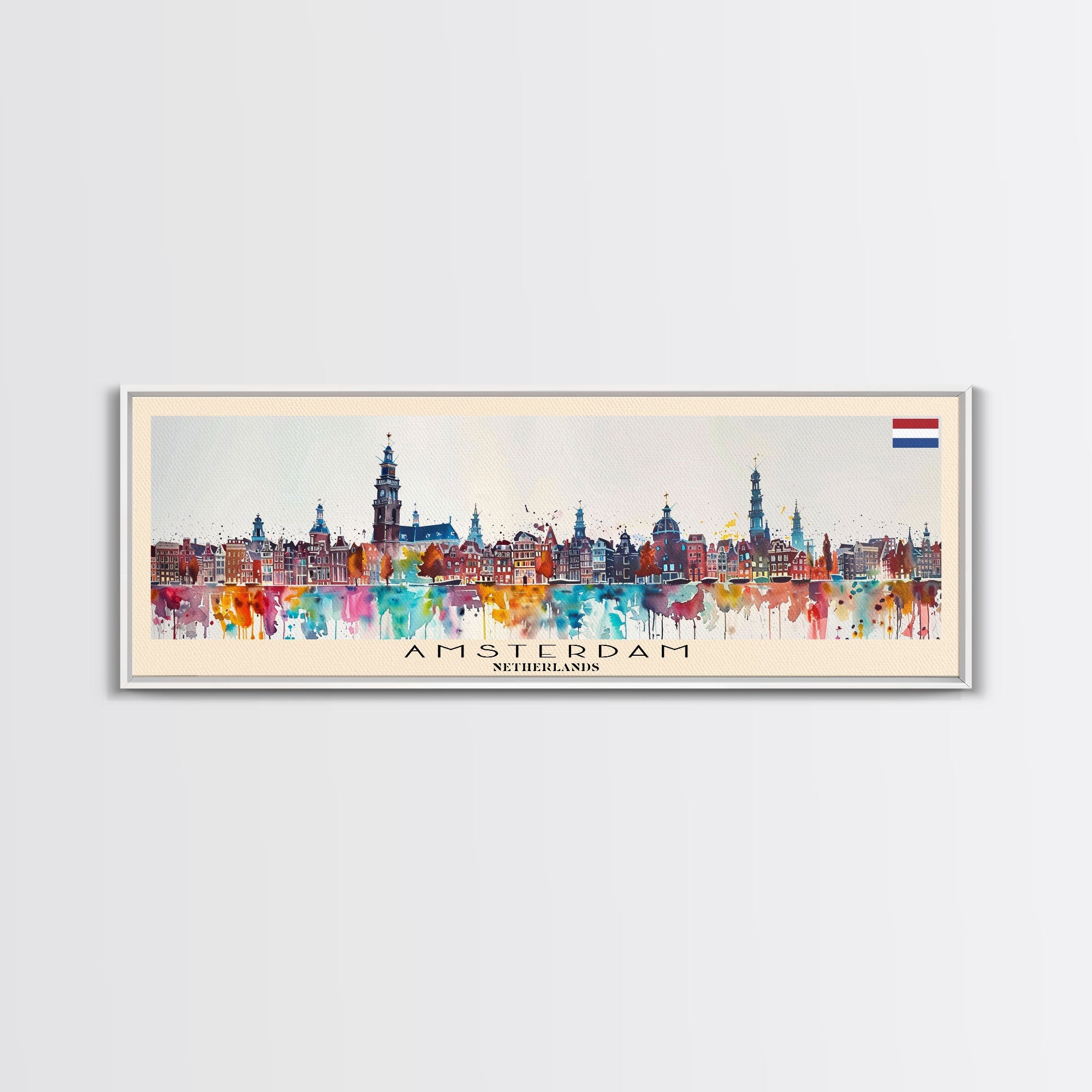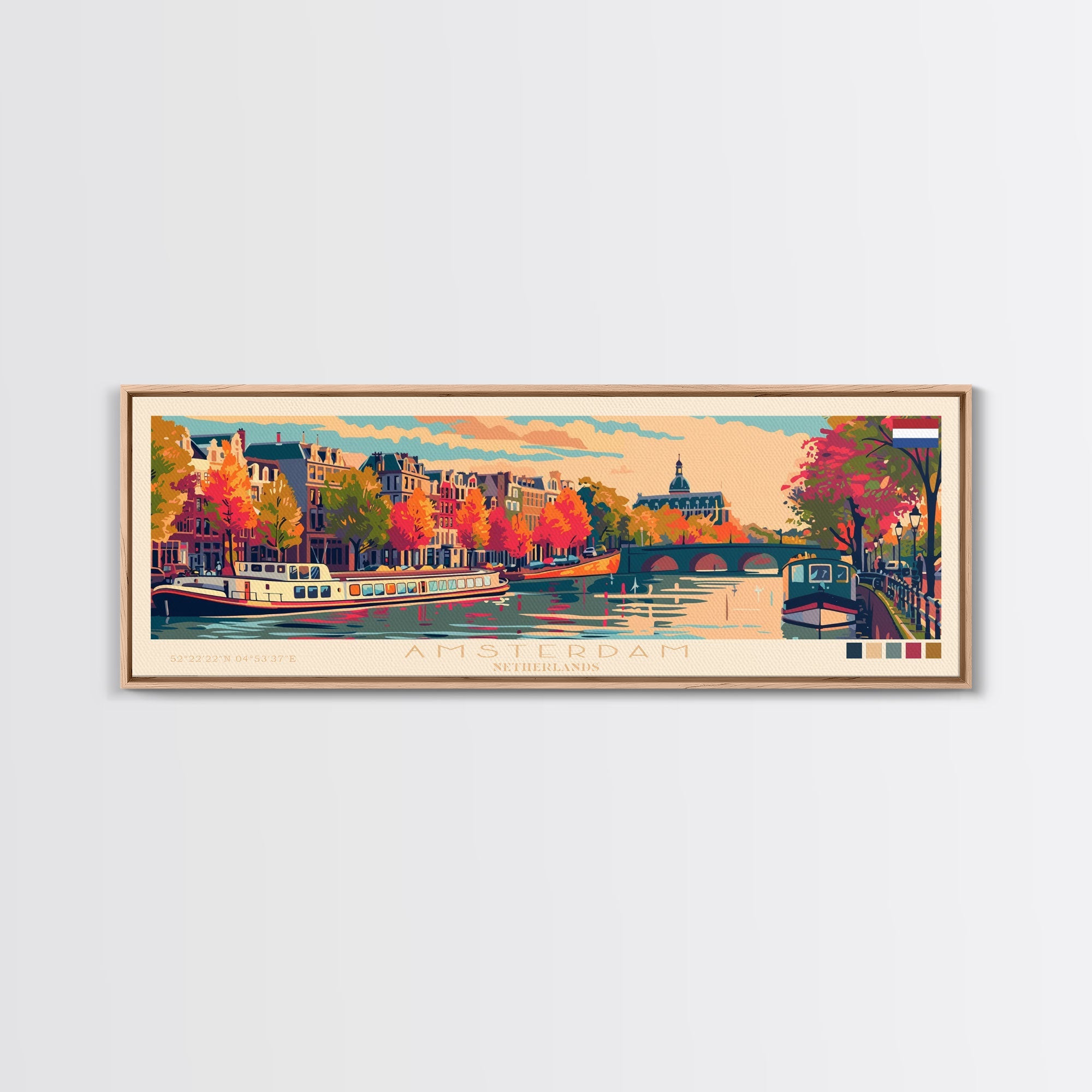 Amsterdam Netherlands Travel Art, City Art, Framed Canvas Print or Metal Wall Art, Europe Travel Poster, Panoramic Wall Art, Extra Wide Wall Art