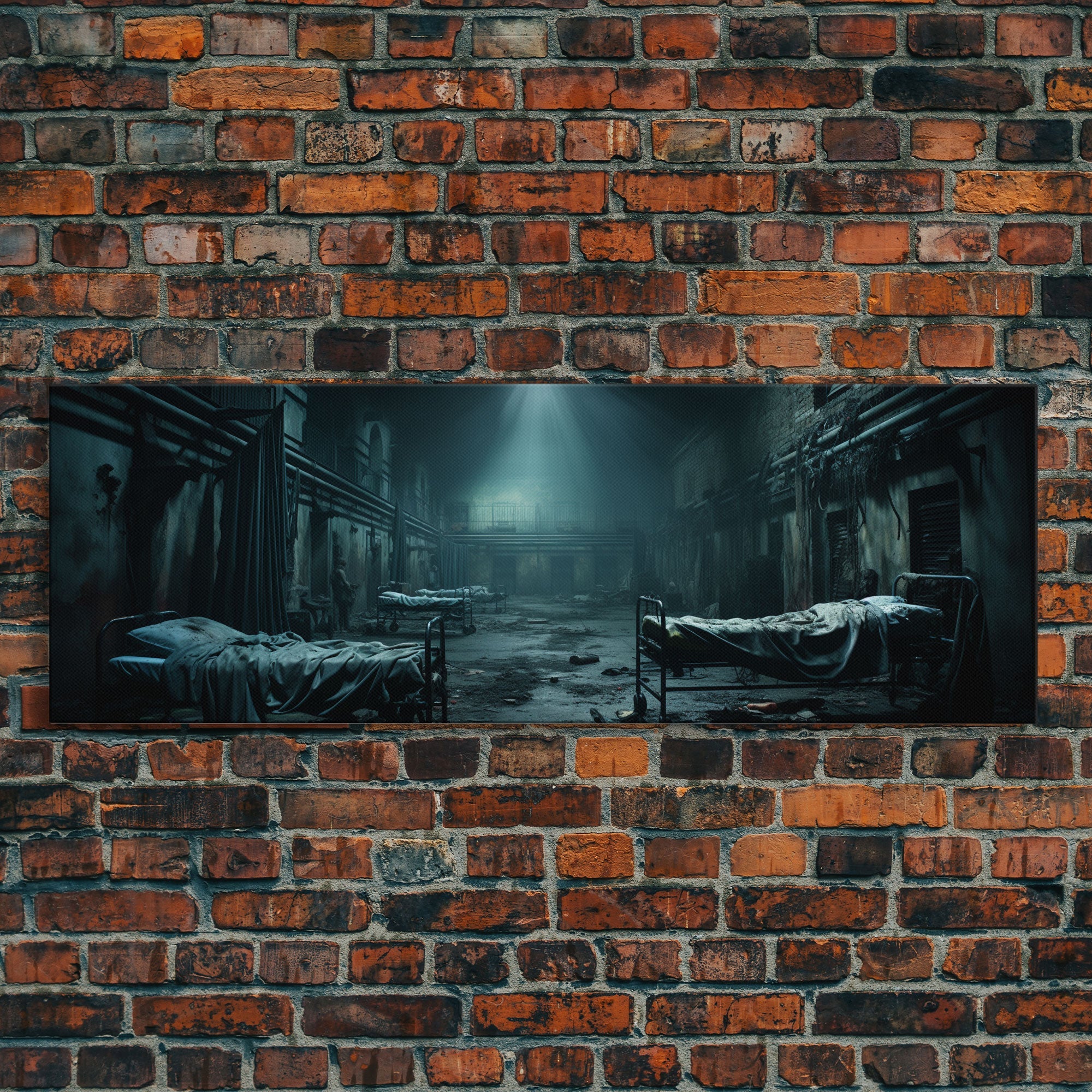 An Abandoned Insane Asylum, Canvas Print Framed Halloween Art, Spooky Decor Panoramic Halloween Art, Halloween Wall Art, Halloween Art Print