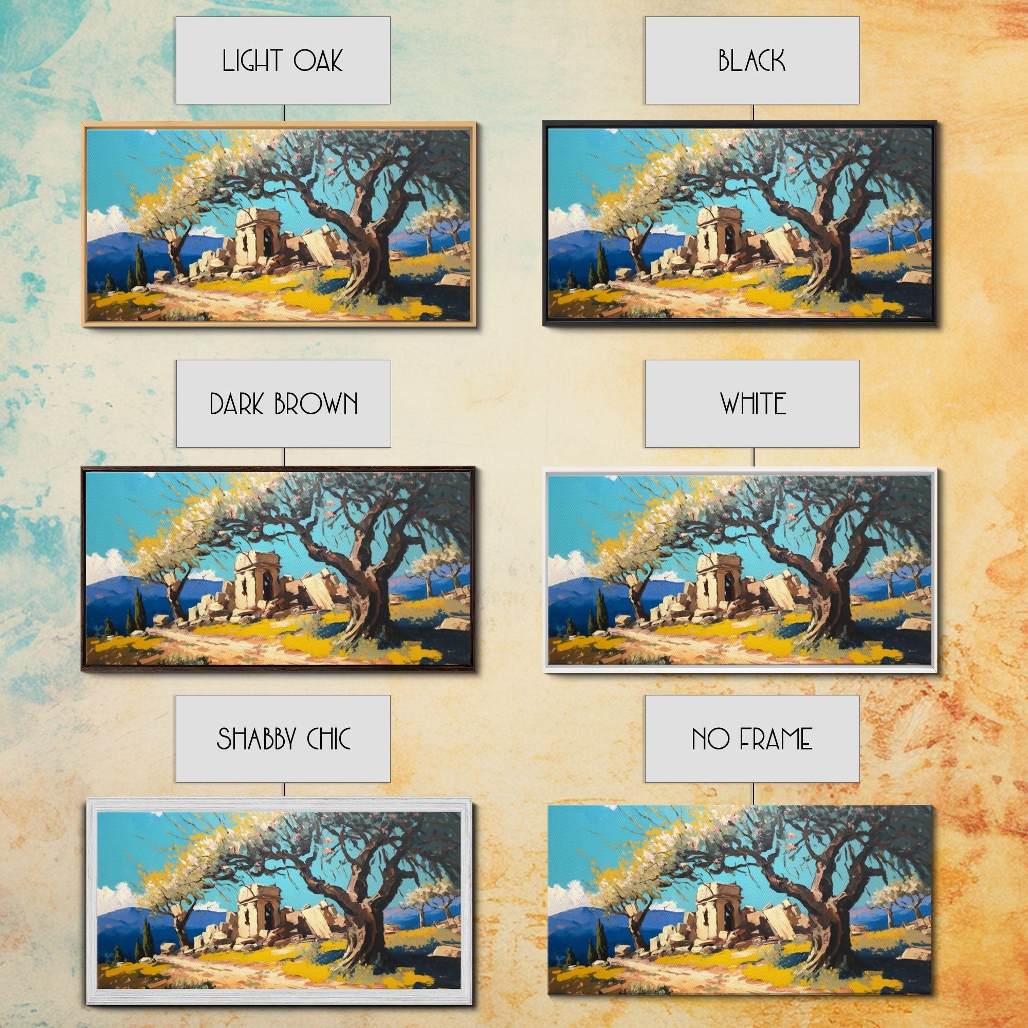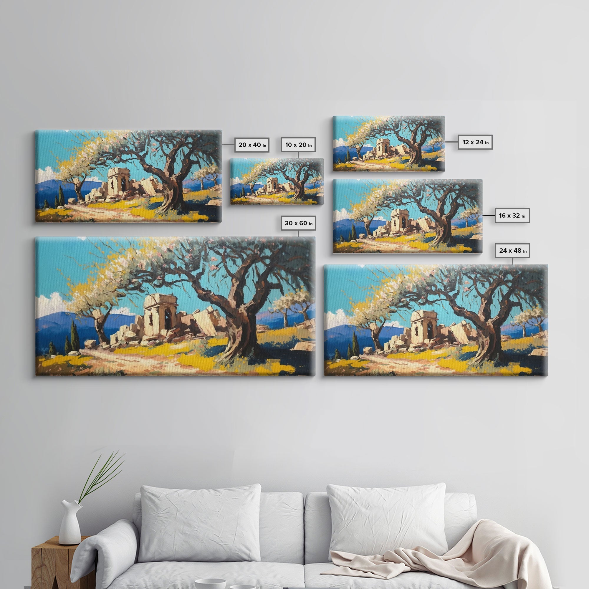Ancient Roman Ruins, Framed Canvas Print, Old World Art, Olive Tree Amongst The Ruins, Living Room Decor