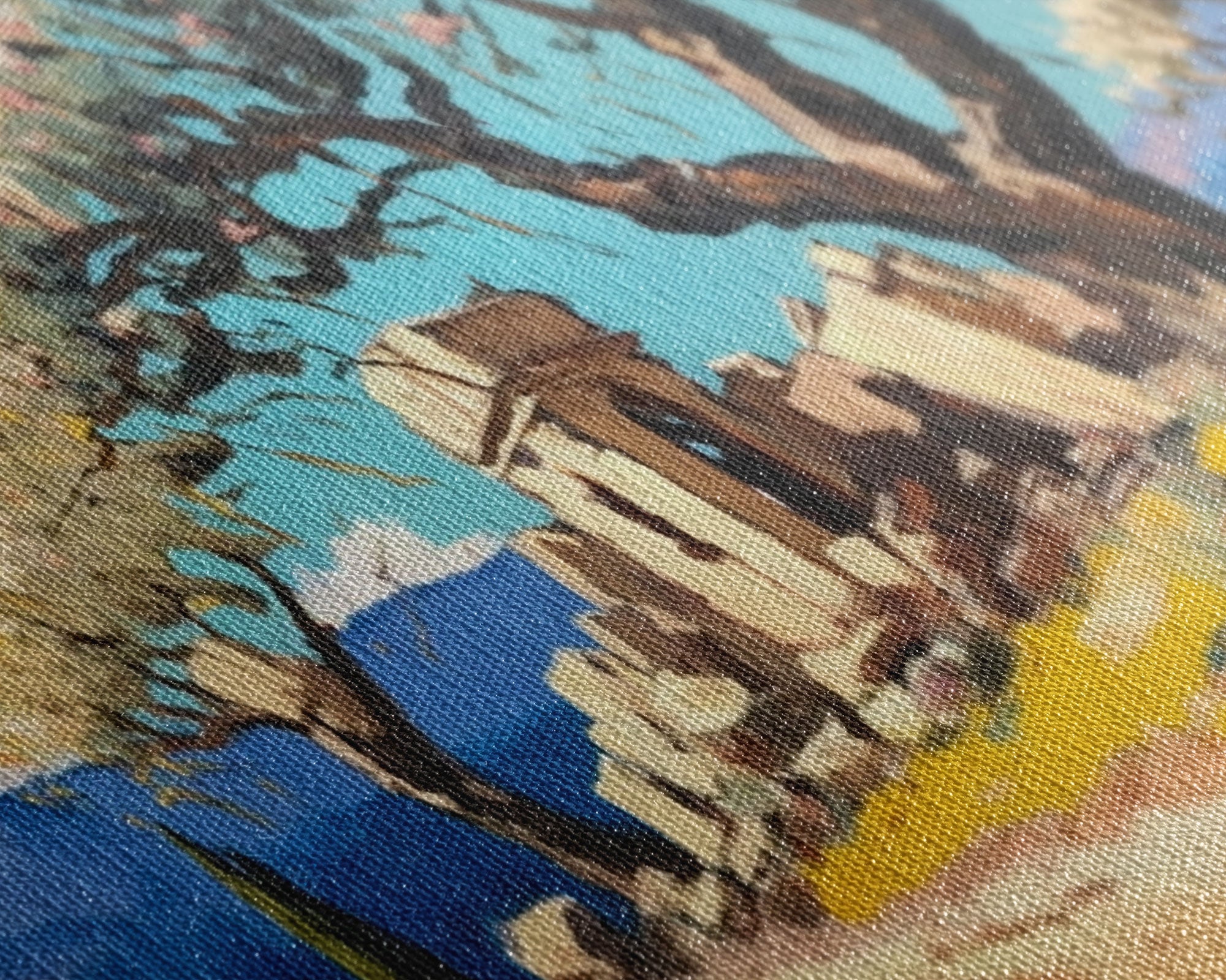 Most of our canvases are made in the USA, with the exception of canvases ordered with the light oak unstained frames, and any large canvases (24x48, 30x60, 16x48 and 20x60) ordered WITH a frame. These are temporarily made in and shipped from Europe, while we try to find a more consistent supplier in the USA.