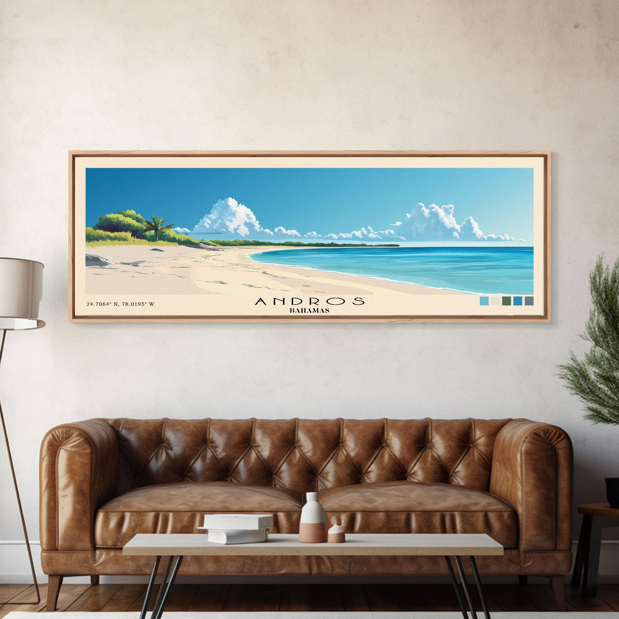 Andros, Bahamas Panoramic Beach Print, Vacation Gift, Bahamas Wall Art, Framed Canvas Print, Framed Beach Painting