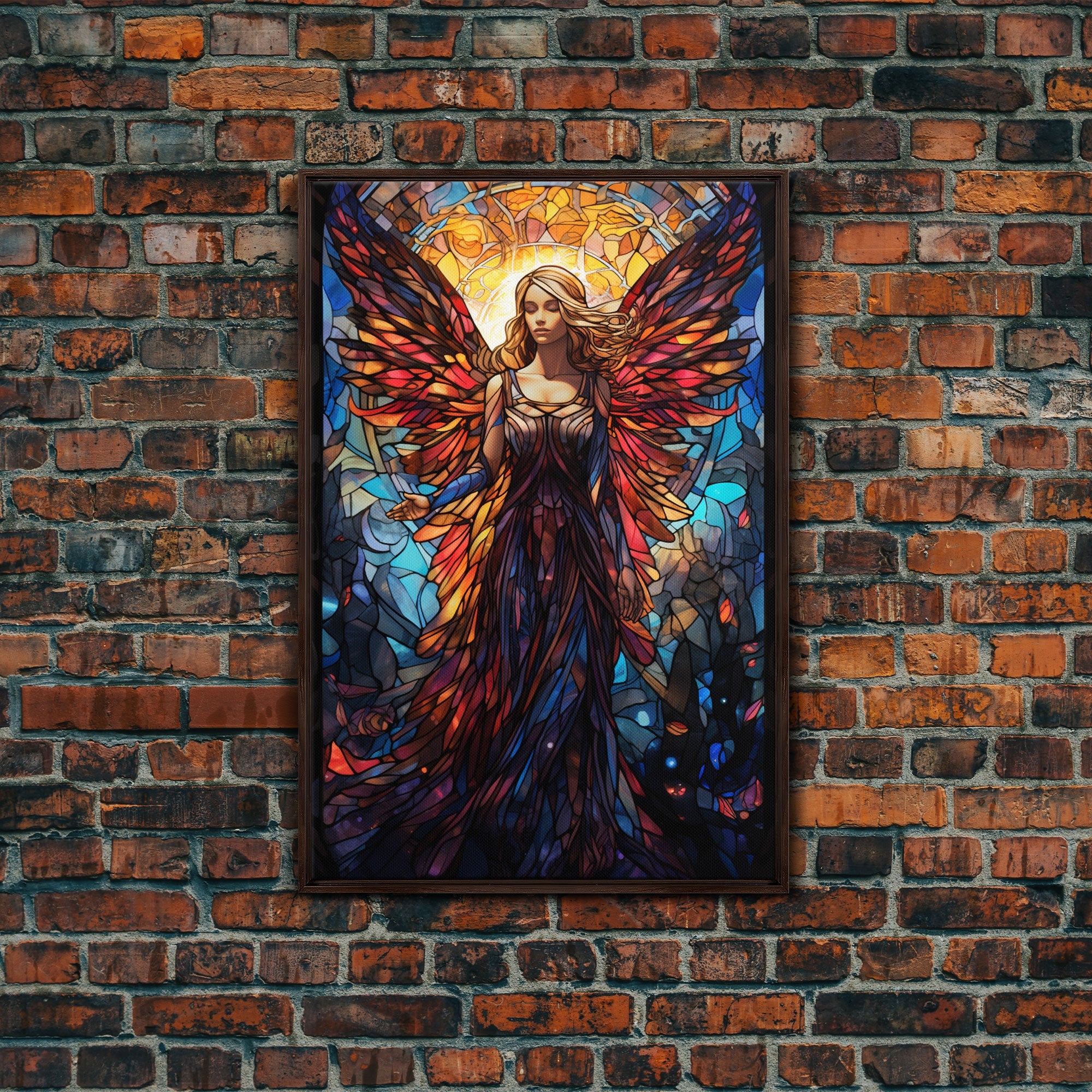 Angel, Fantasy Art, Angel Wings, Canvas Print, Wall Hanging, Portrait Art, Stained Glass Art, Housewarming Gift, Bedroom Teen Girl Art