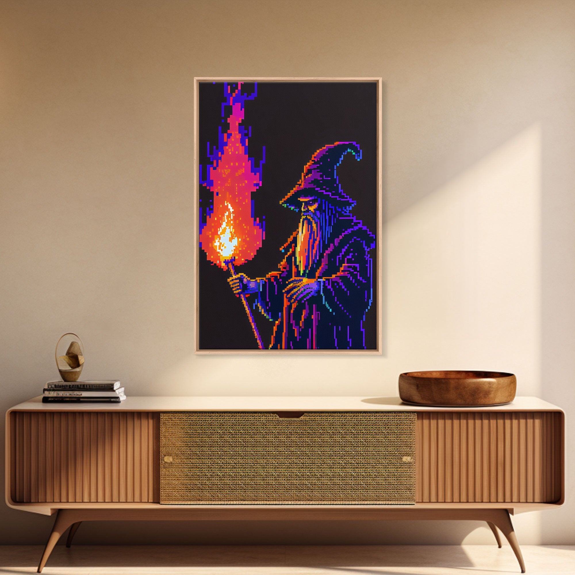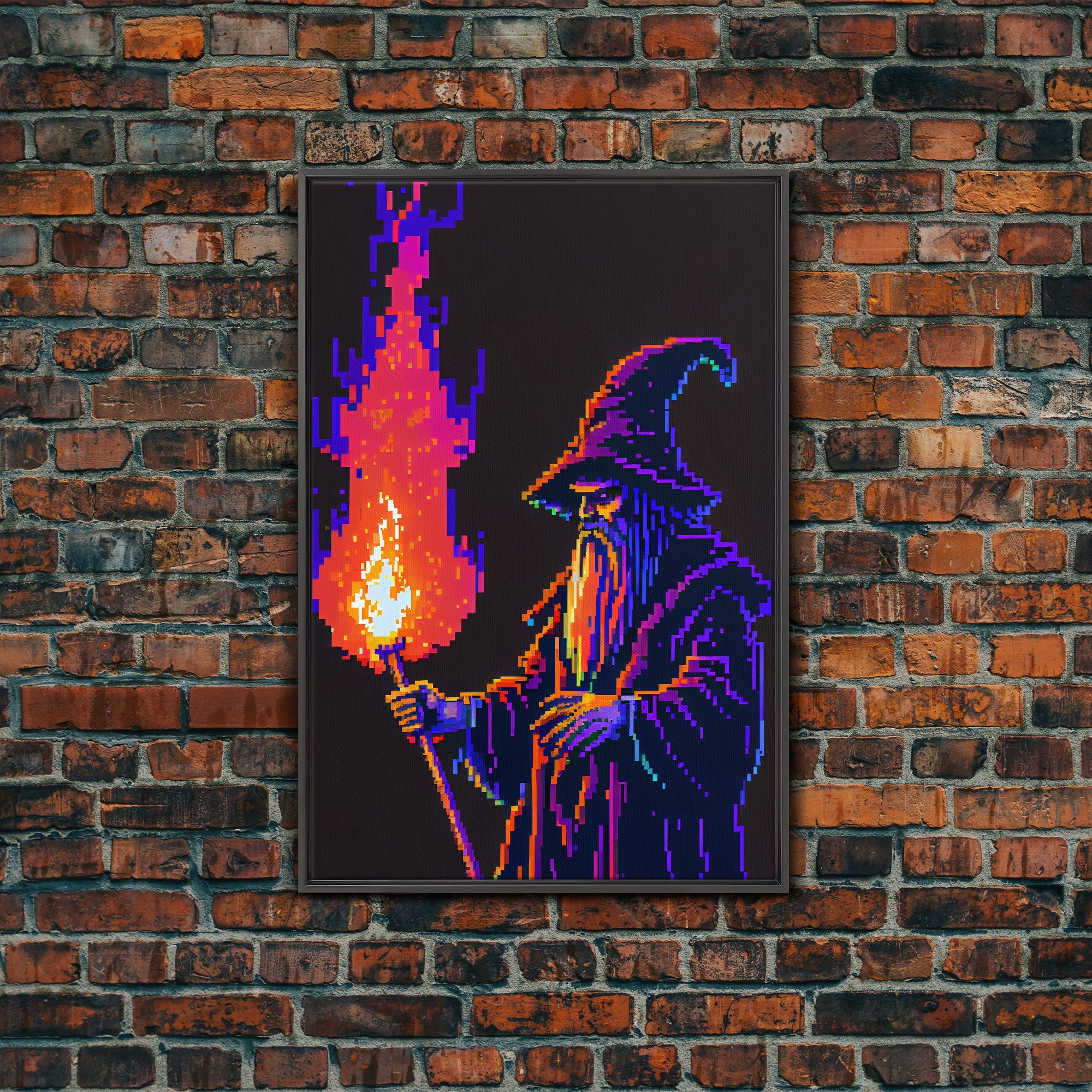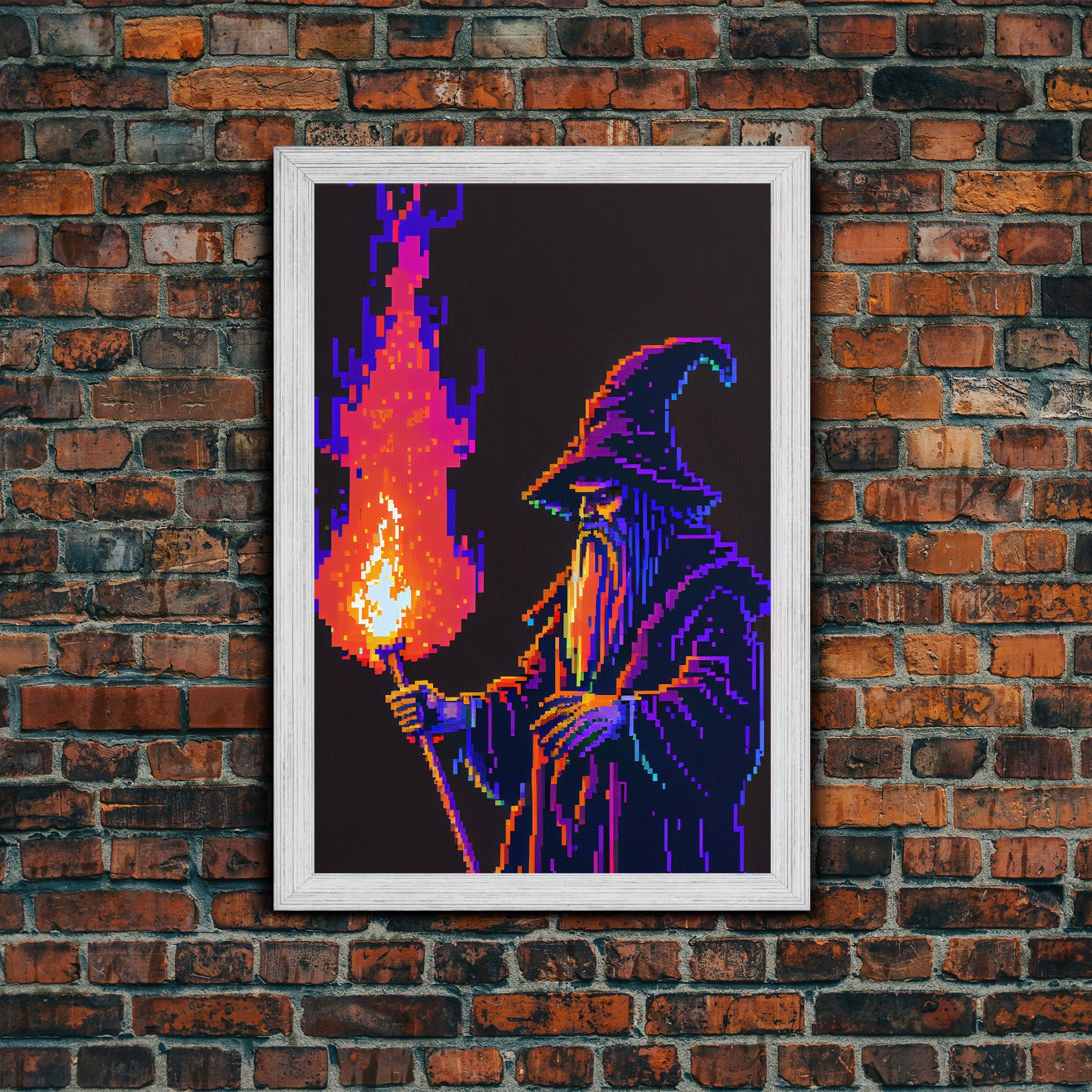 Angry Old Wizard Fire Scepter Gamer Fine Art Print, Wall Decor, Wall Poster, Wall Art Print