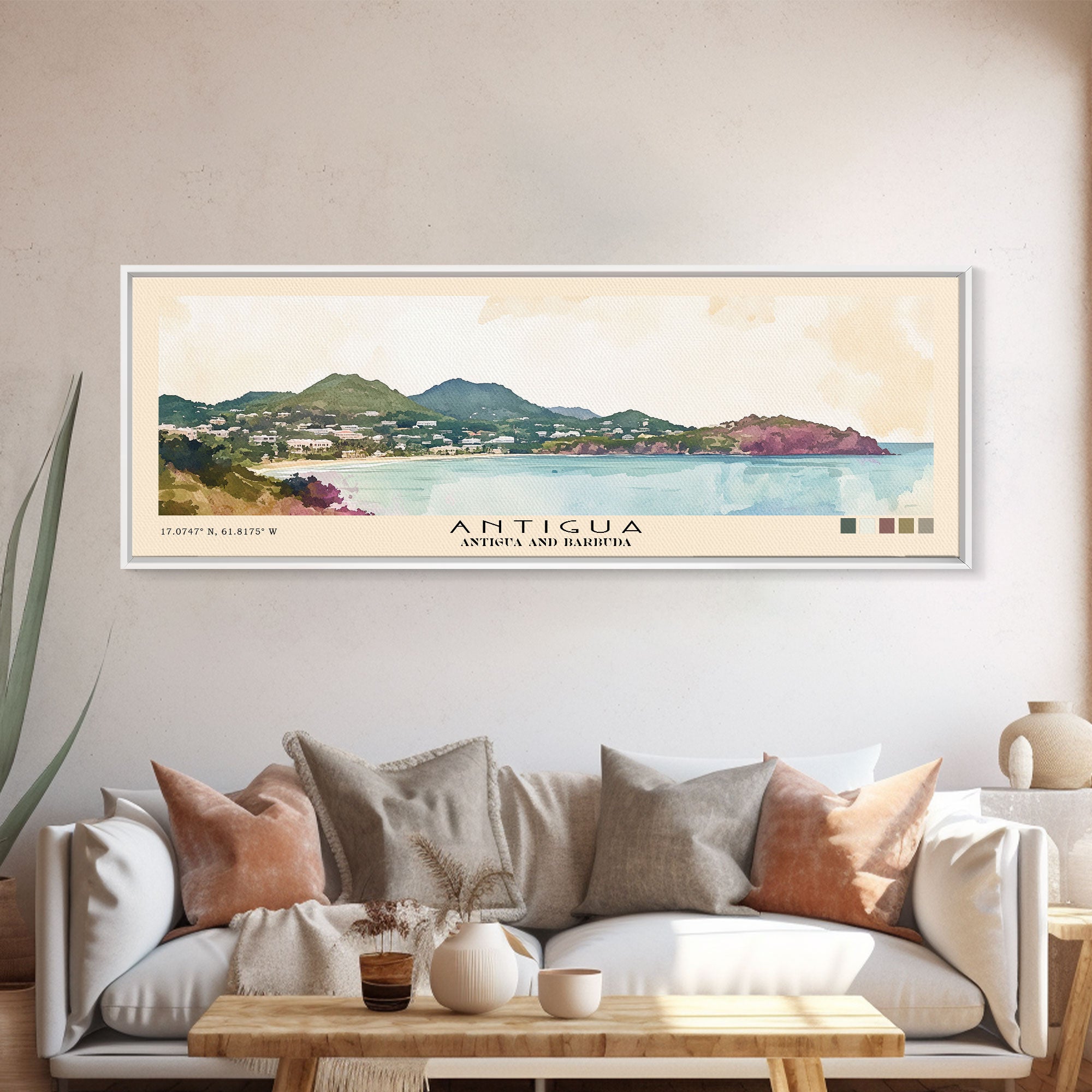 Antigua, Antigua and Barbuda Watercolor Beach Print, Vacation Gift, Antigua and Barbuda Wall Art, Framed Canvas Print, Framed Beach Painting